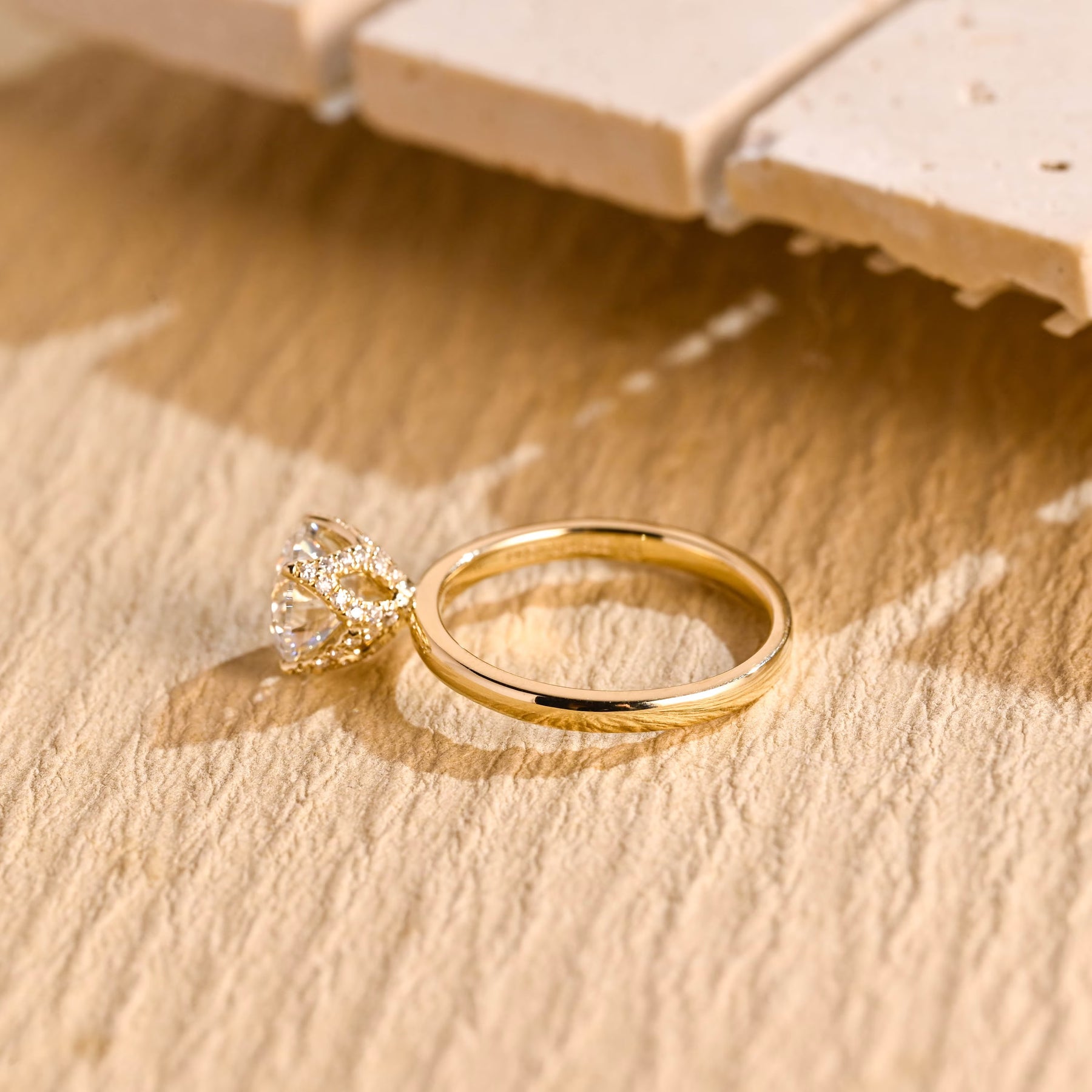 1.0 CT Round Diamond Hidden Diamond Moissanite Engagement Ring