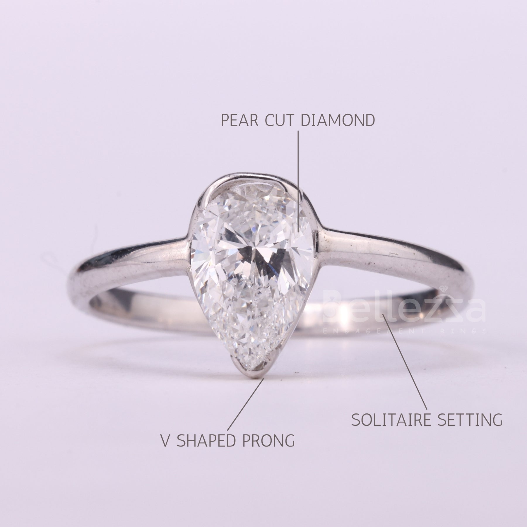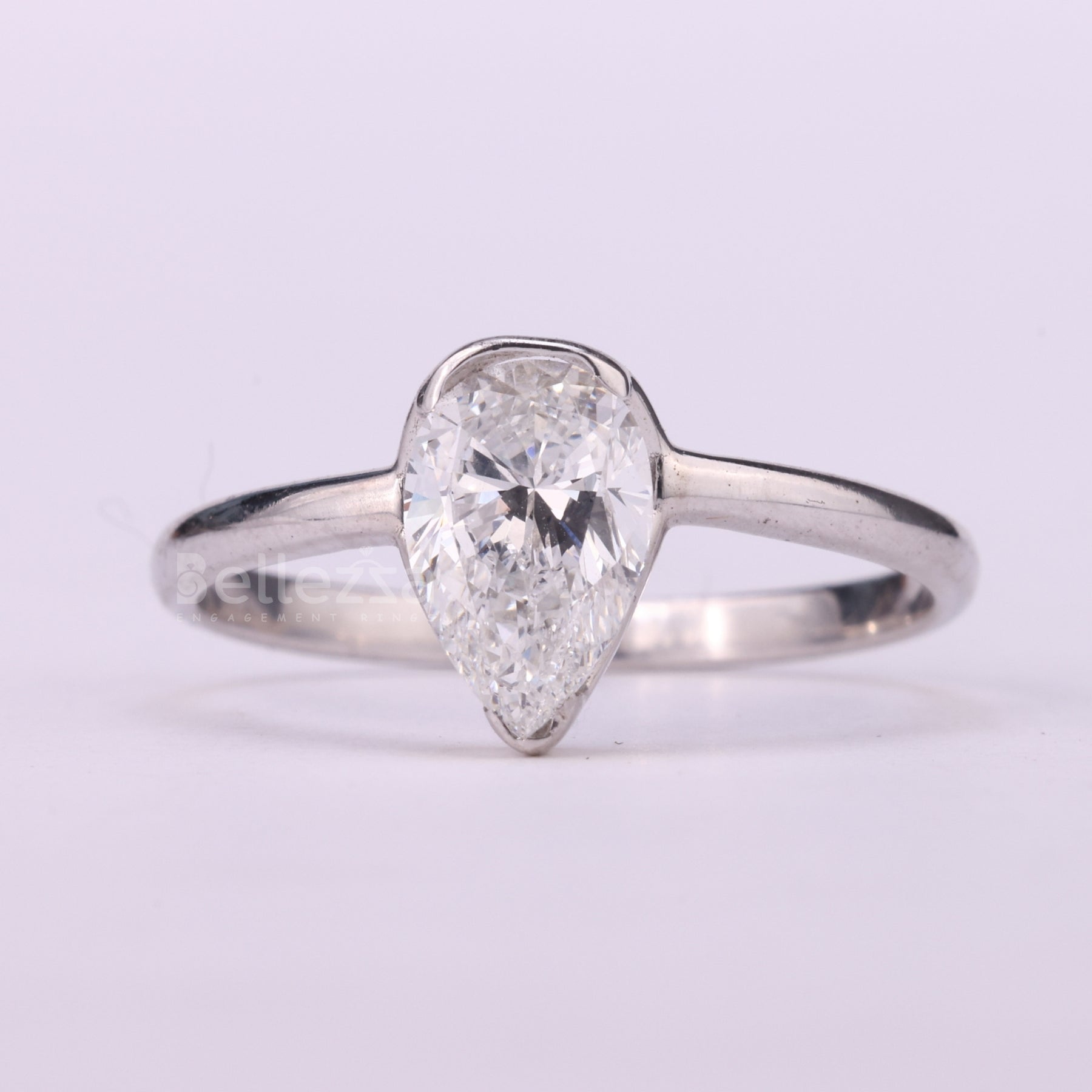 1.00CT Pear Cut Moissanite Diamond Solitaire Engagement Ring