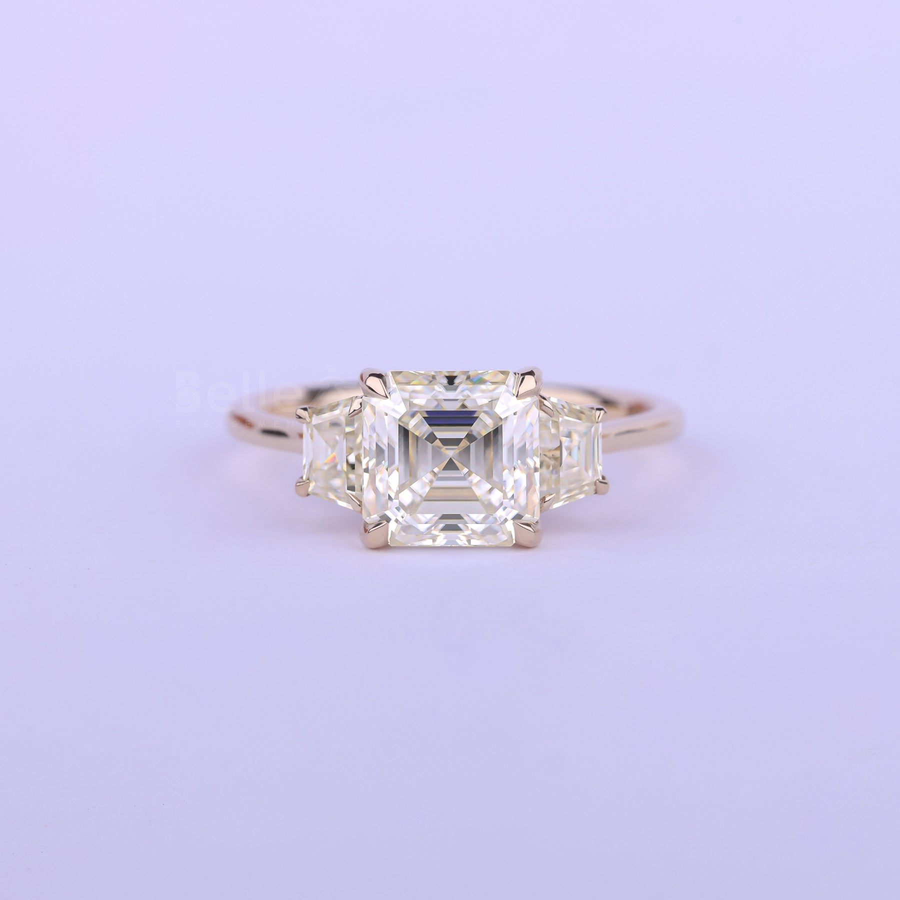 1.0CT Asscher Cut Diamond Three Stone Moissanite Engagement Ring