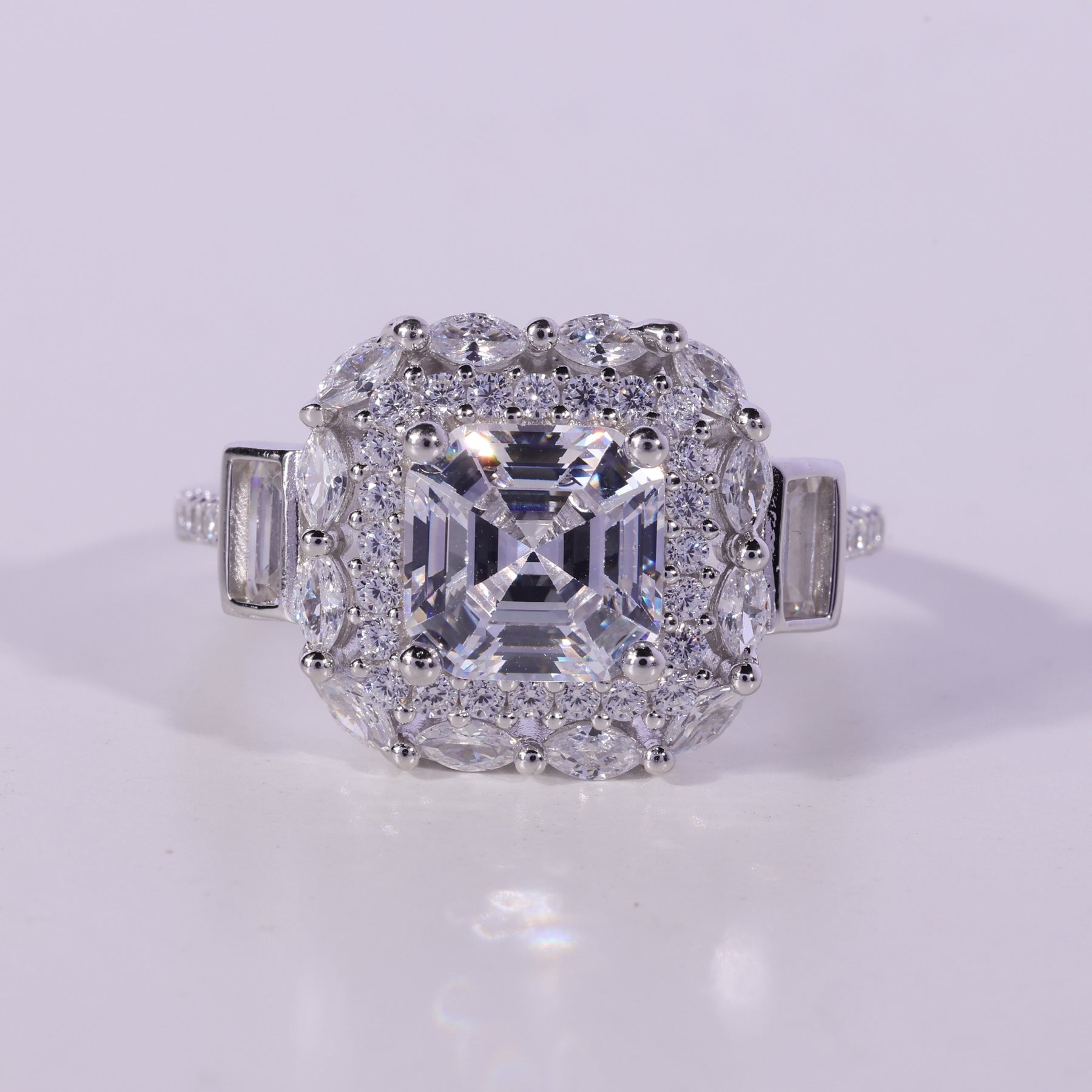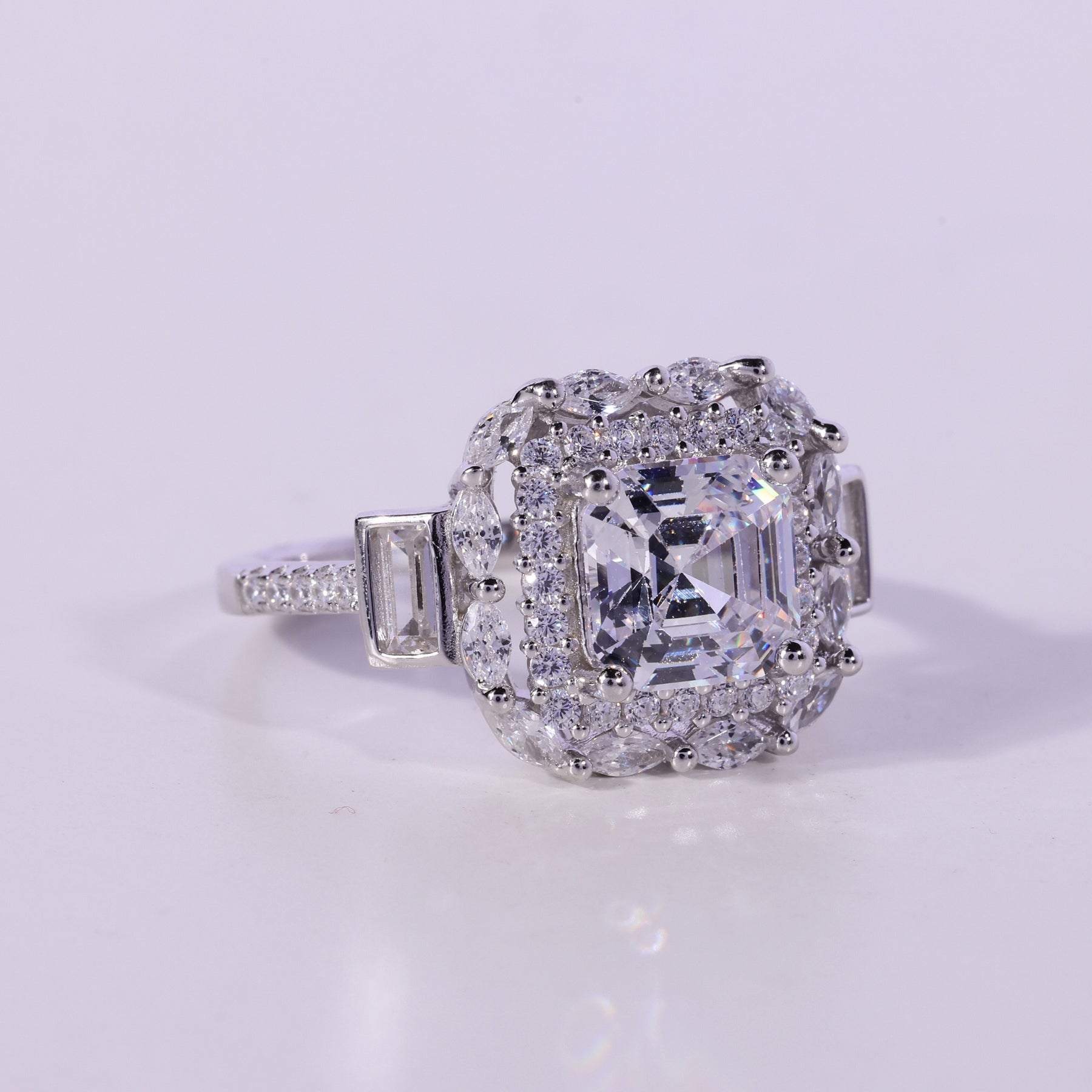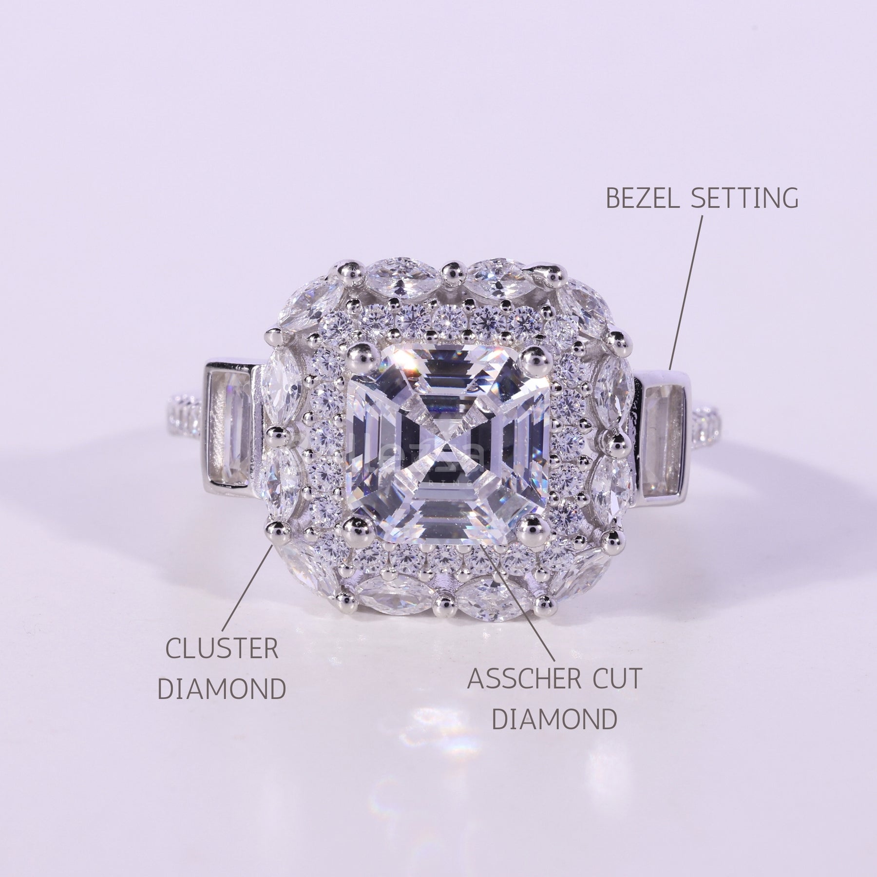 1.0CT Asscher Cut Cluster Diamond Moissanite Engagement Ring