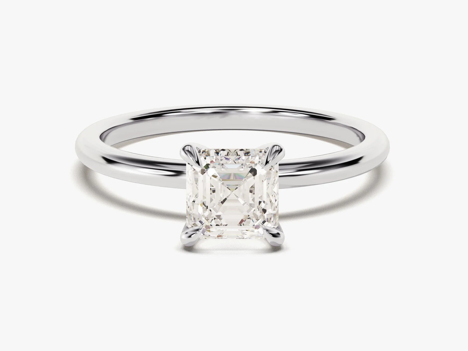 1.0CT Asscher Cut Solitaire Diamond Moissanite Engagement Ring