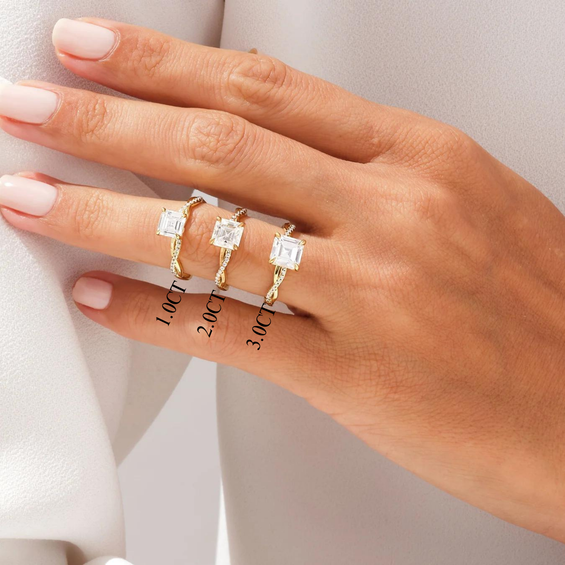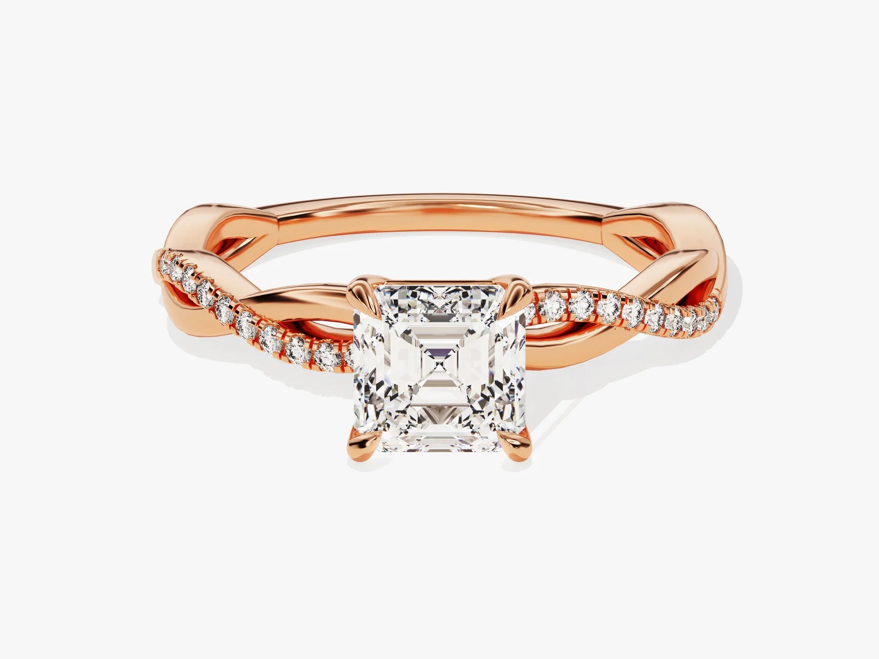 1.0CT Asscher Diamond Twisted Pave Setting Moissanite Engagement Ring