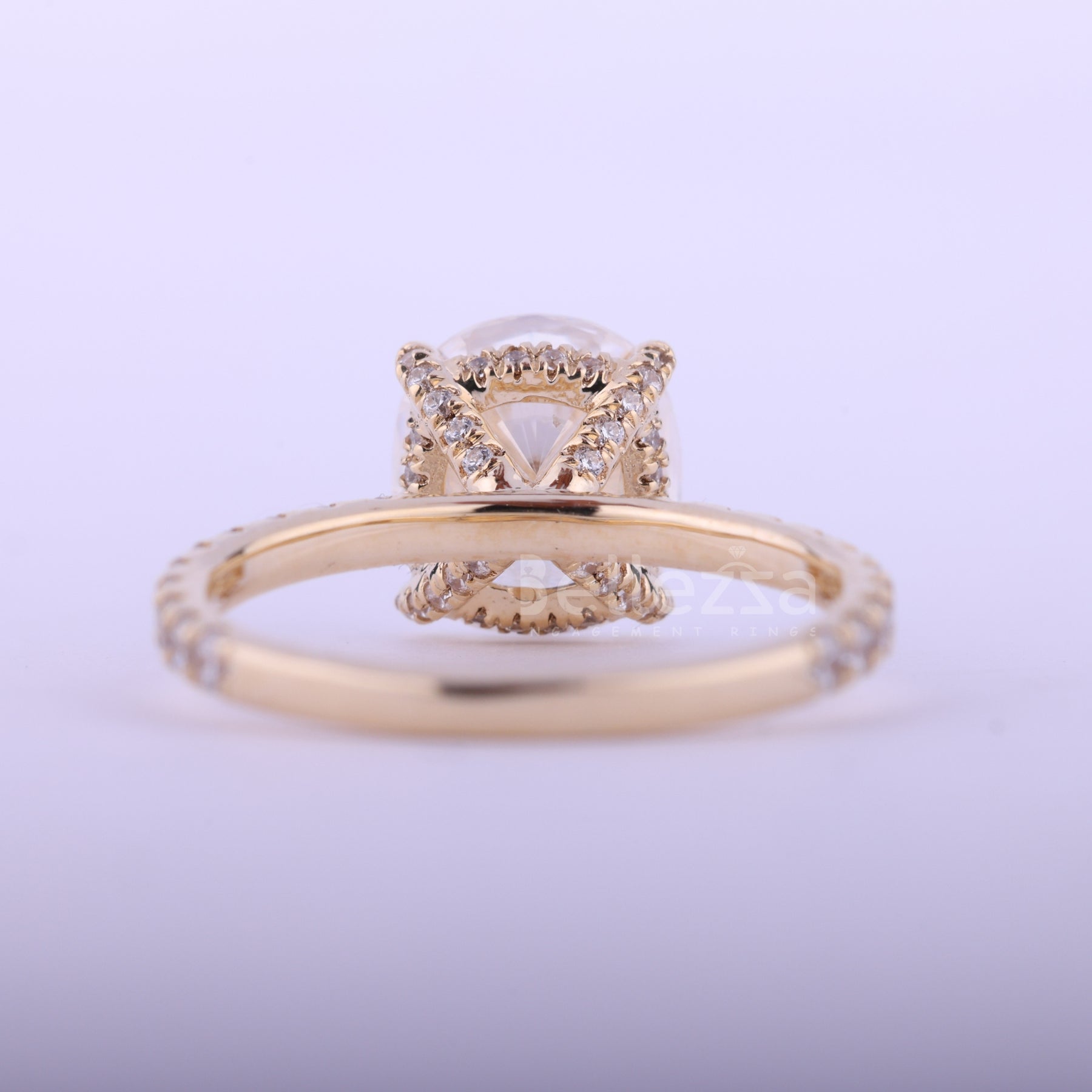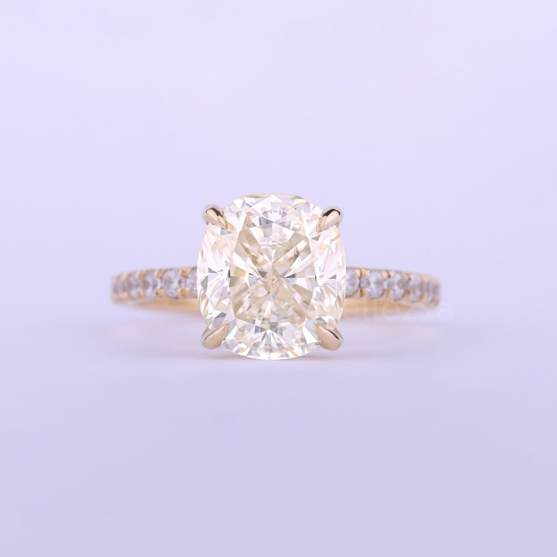 1.0CT Cushion Cut Pave Setting Moissanite Engagement Ring