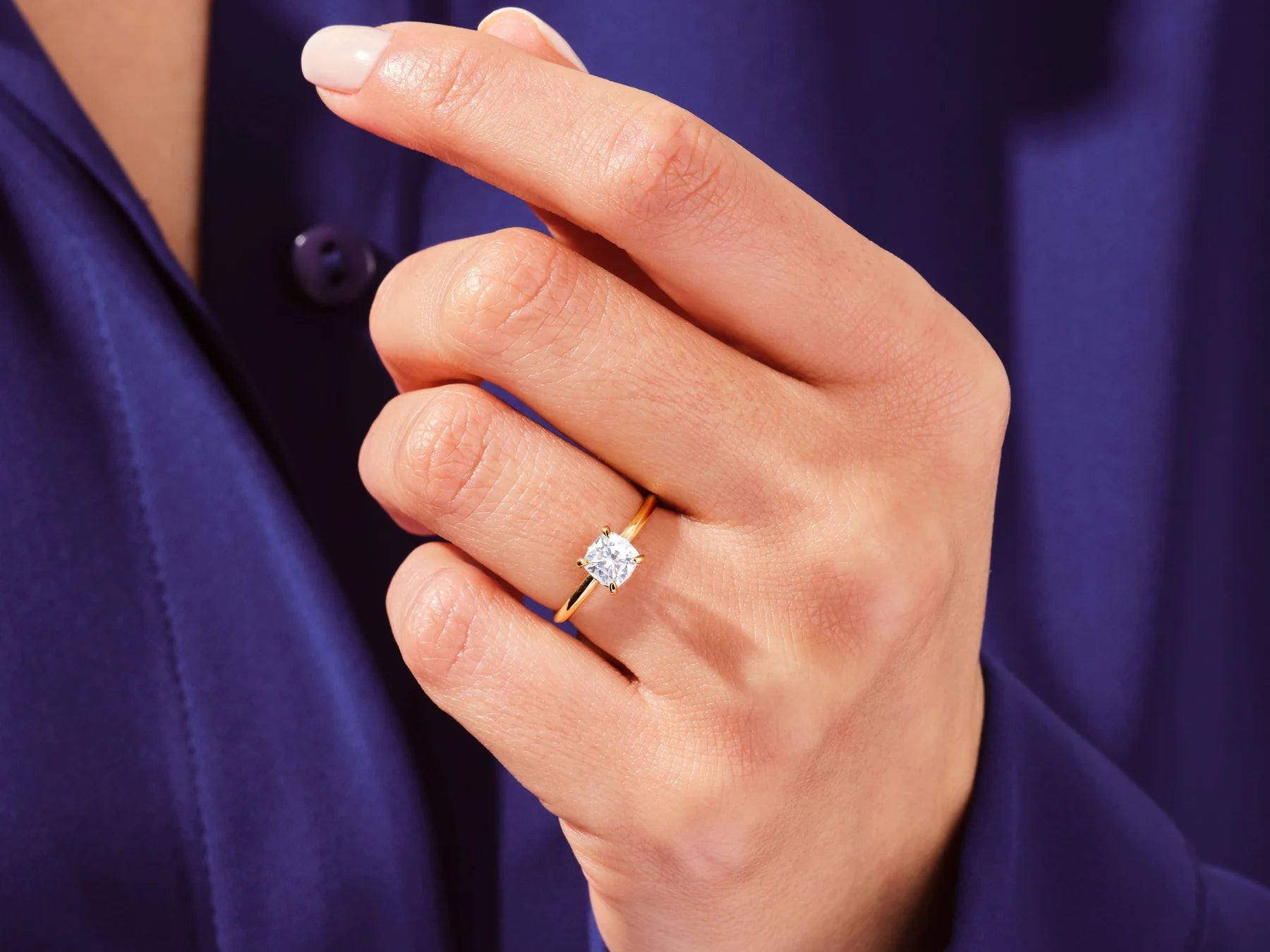 1.0CT Cushion Cut Solitaire Diamond Moissanite Engagement Ring