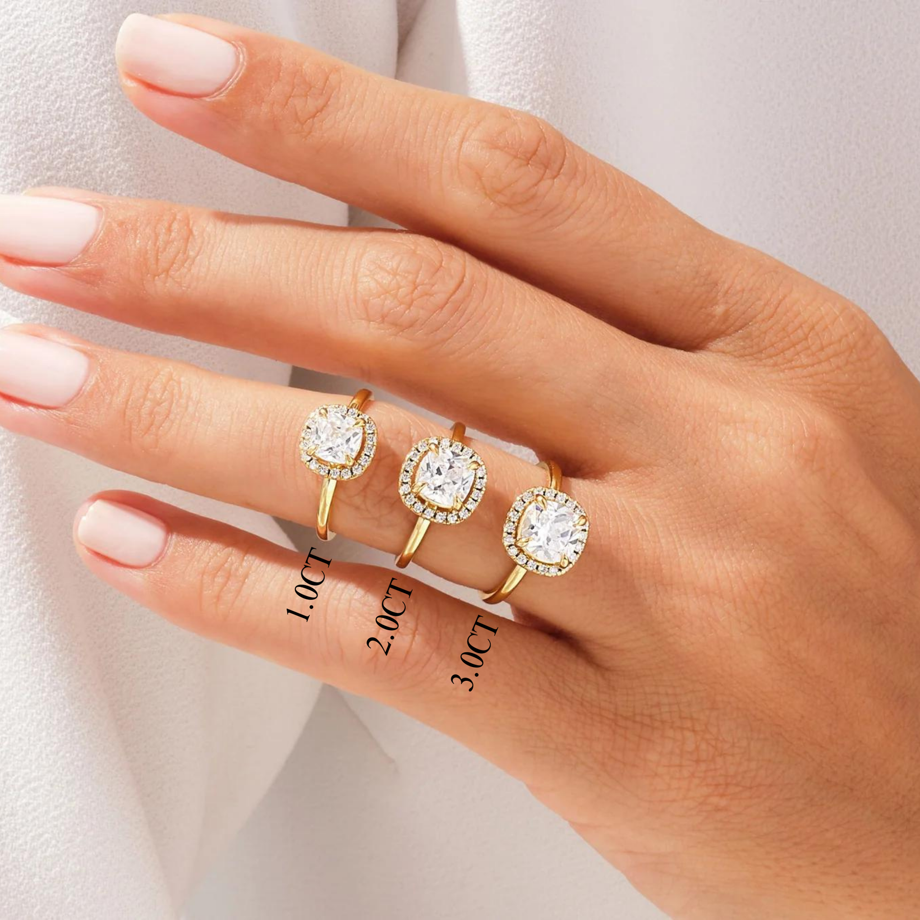 1.0CT Cushion Diamond Halo Moissanite Engagement Ring