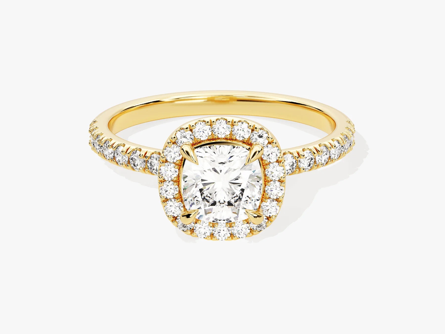 1.0CT Cushion Diamond Halo Pave Setting Moissanite Engagement Ring