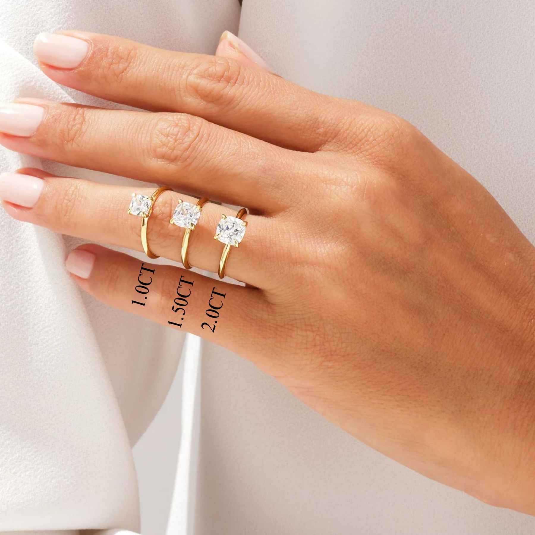 1.0CT Cushion Diamond Knife Edge Solitaire Moissanite Engagement Ring