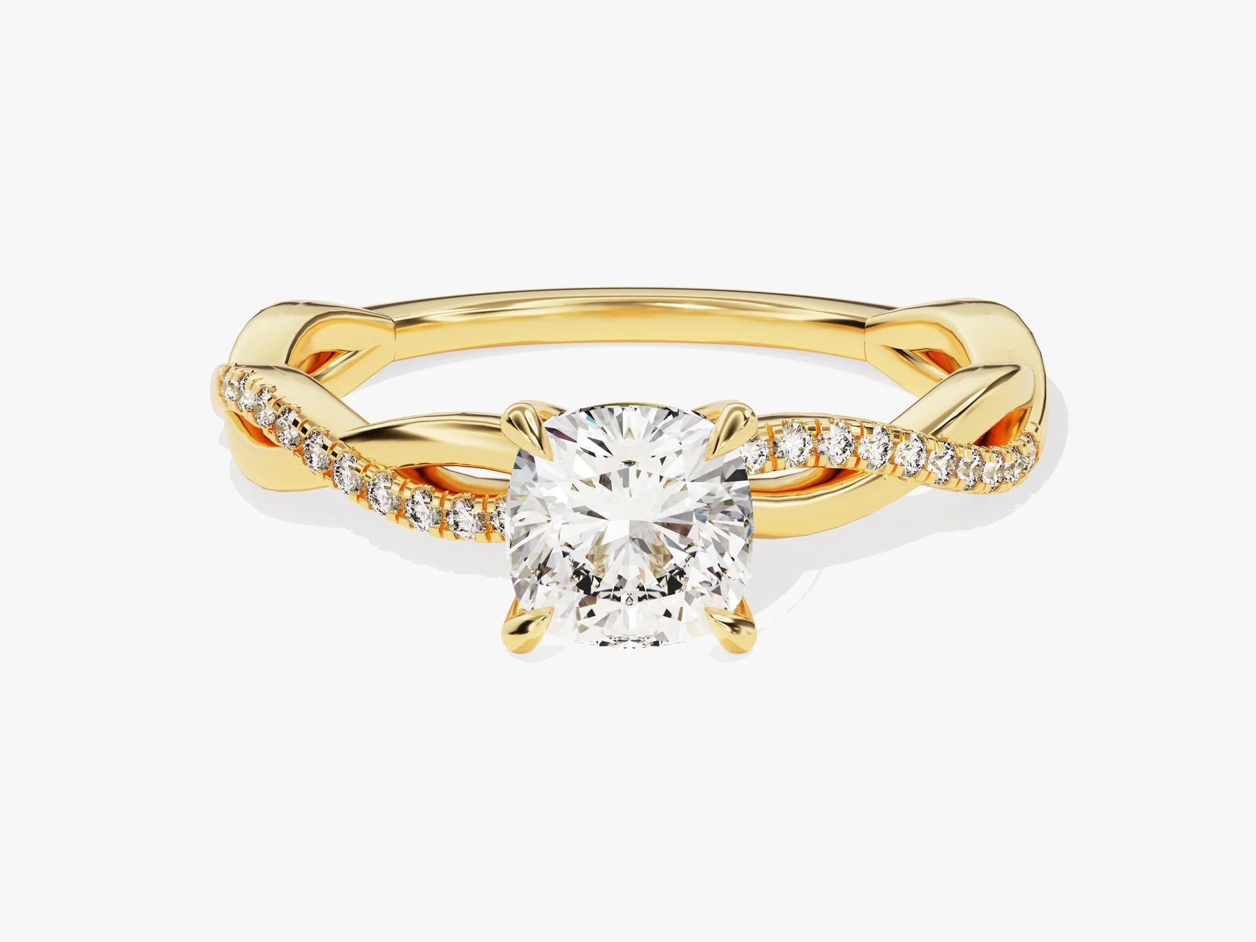 1.0CT Cushion Diamond Twisted Pave Setting Moissanite Engagement Ring
