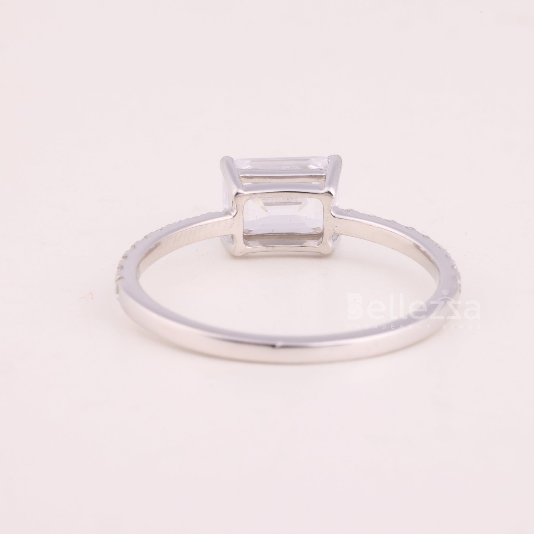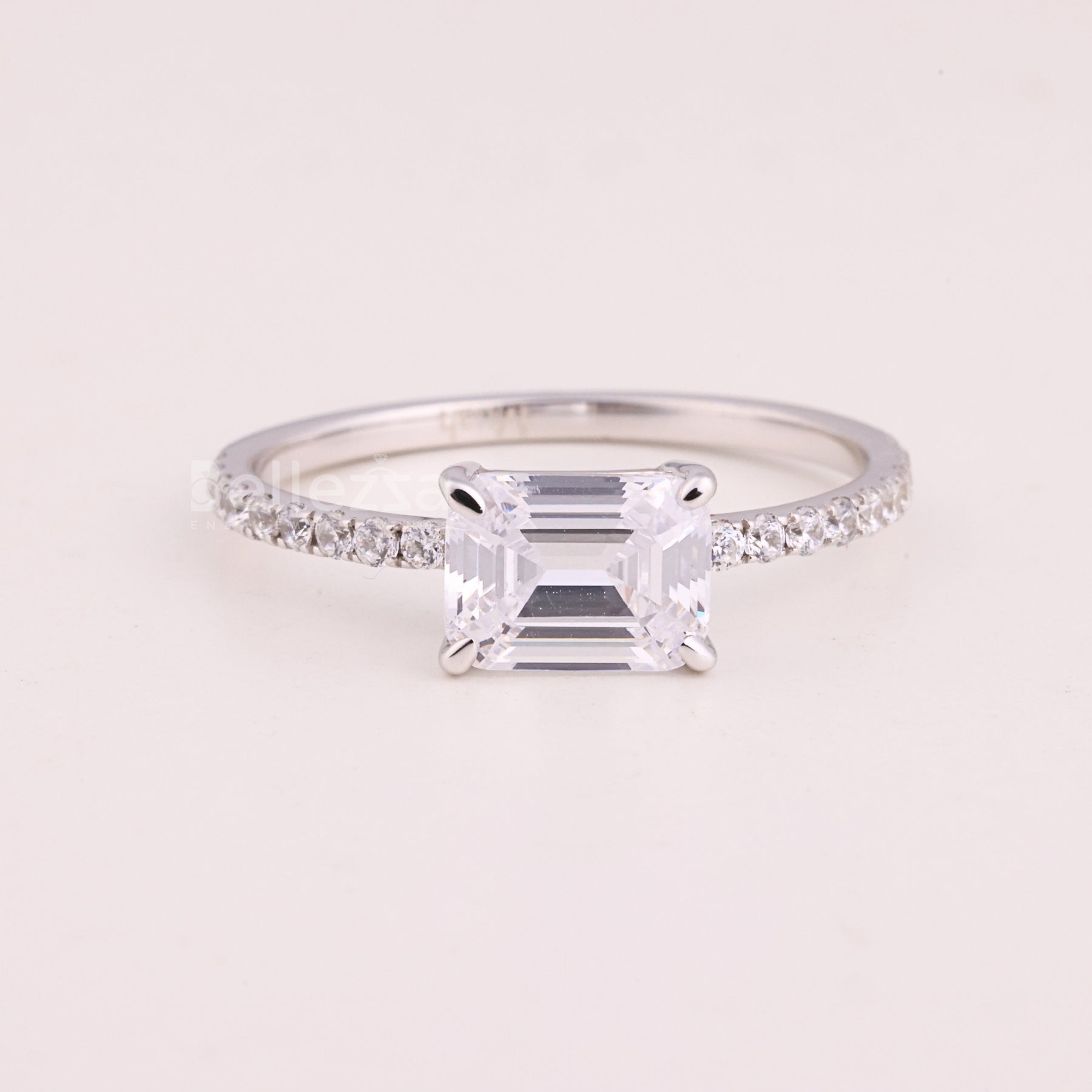 1.0CT East-West Emerald Cut Pave Setting Moissanite Engagement Ring