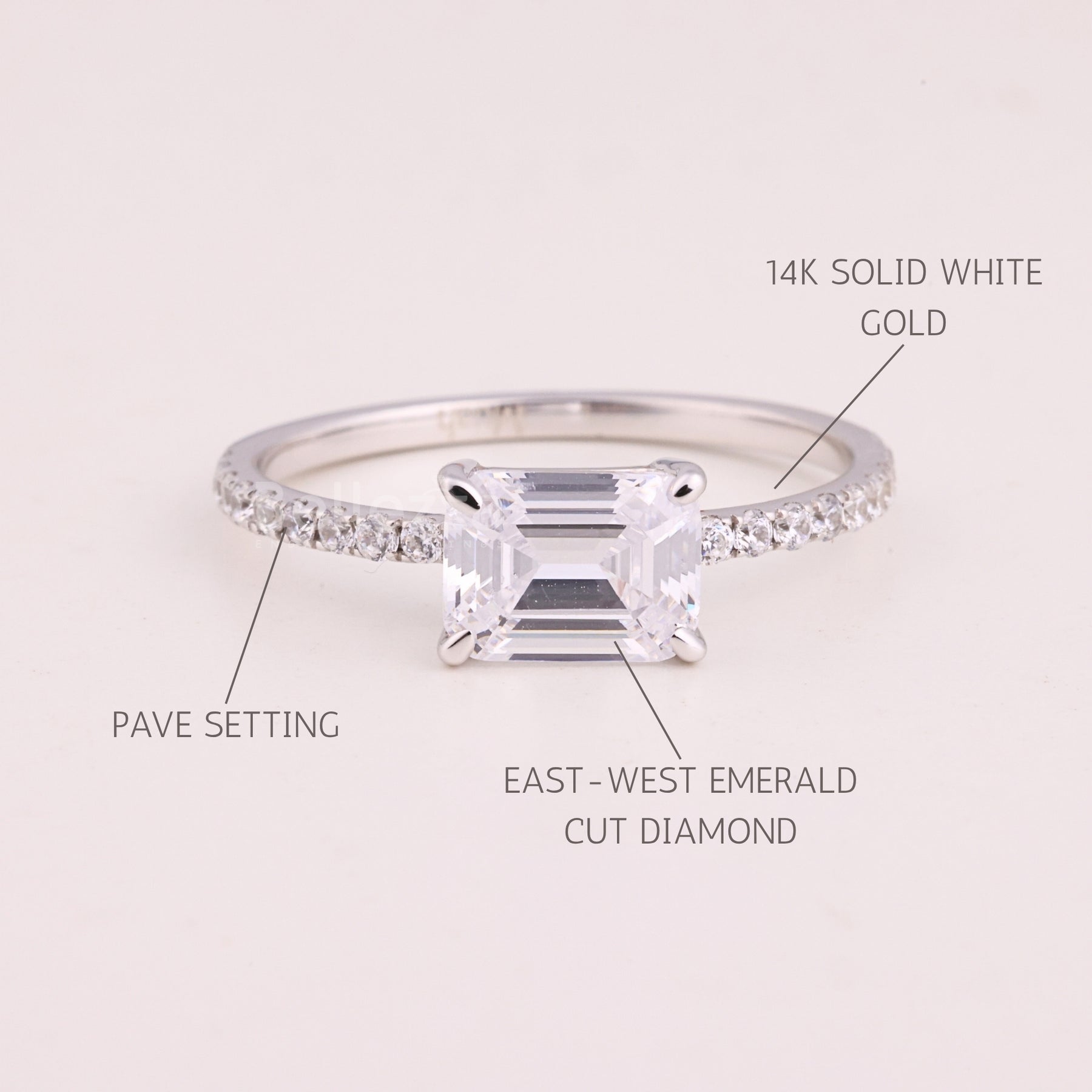✥The image above features our elegant 1.0CT East-West Emerald Cut Pave Setting Moissanite Engagement Ring, a unique design that blends classic sophistication with modern artistry. Showcasing a sleek Emerald Cut center stone set in an East-West orientation, this ring is further enhanced by a sparkling Pave Setting along the band. Crafted with premium Moissanite, it offers the brilliance of diamonds while remaining eco-friendly and durable. Its polished band highlights the stone’s elongated beauty, making it a perfect Engagement Ring for proposals, anniversaries, or milestone celebrations. Ideal for brides seeking a distinctive yet timeless design, this ring embodies romance, style, and superior craftsmanship. Celebrate your love with a radiant creation that captures hearts instantly.