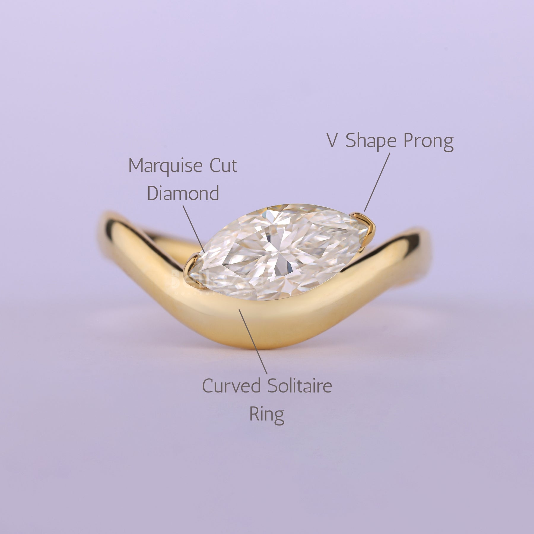 ✥The image features a striking 1.0CT East-West marquise cut diamond set horizontally in this elegant Curved Moissanite Engagement Ring. The unique East-West marquise cut offers a modern, bold look that beautifully elongates the finger, while the graceful curved band enhances the ring’s fluid design. Expertly crafted for lasting brilliance and comfort, this moissanite engagement ring blends contemporary style with timeless elegance. Perfect for those seeking a distinctive and sophisticated symbol of love, this ring captures attention with its sleek and unforgettable design.