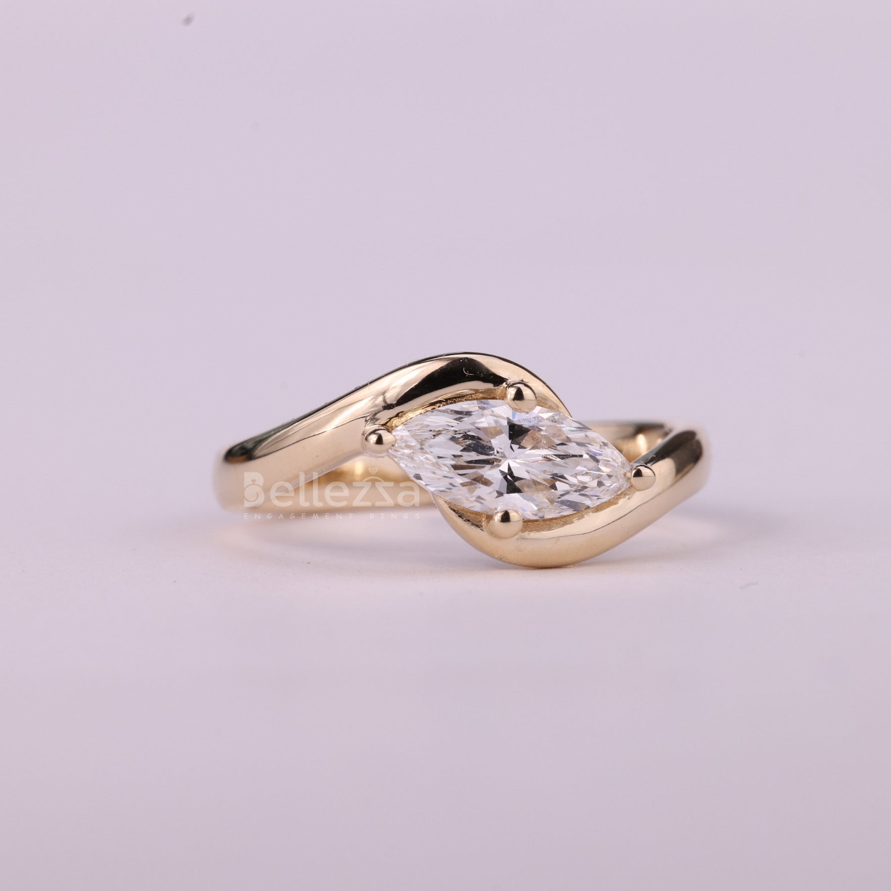✥The image is showing a 1.0CT East-West Marquise Cut Moissanite Engagement Ring, a modern and elegant choice for brides who love distinctive designs. Featuring a sparkling marquise cut center stone set in a stylish east-west orientation, it creates a unique and contemporary look. The sleek moissanite engagement ring design combines durability, brilliance, and affordability compared to diamonds. With a perfect 1.0CT engagement ring, it balances subtle sophistication with noticeable sparkle. Expertly crafted, this ring showcases refined craftsmanship and timeless elegance. A standout piece that symbolizes love, individuality, and everlasting charm.