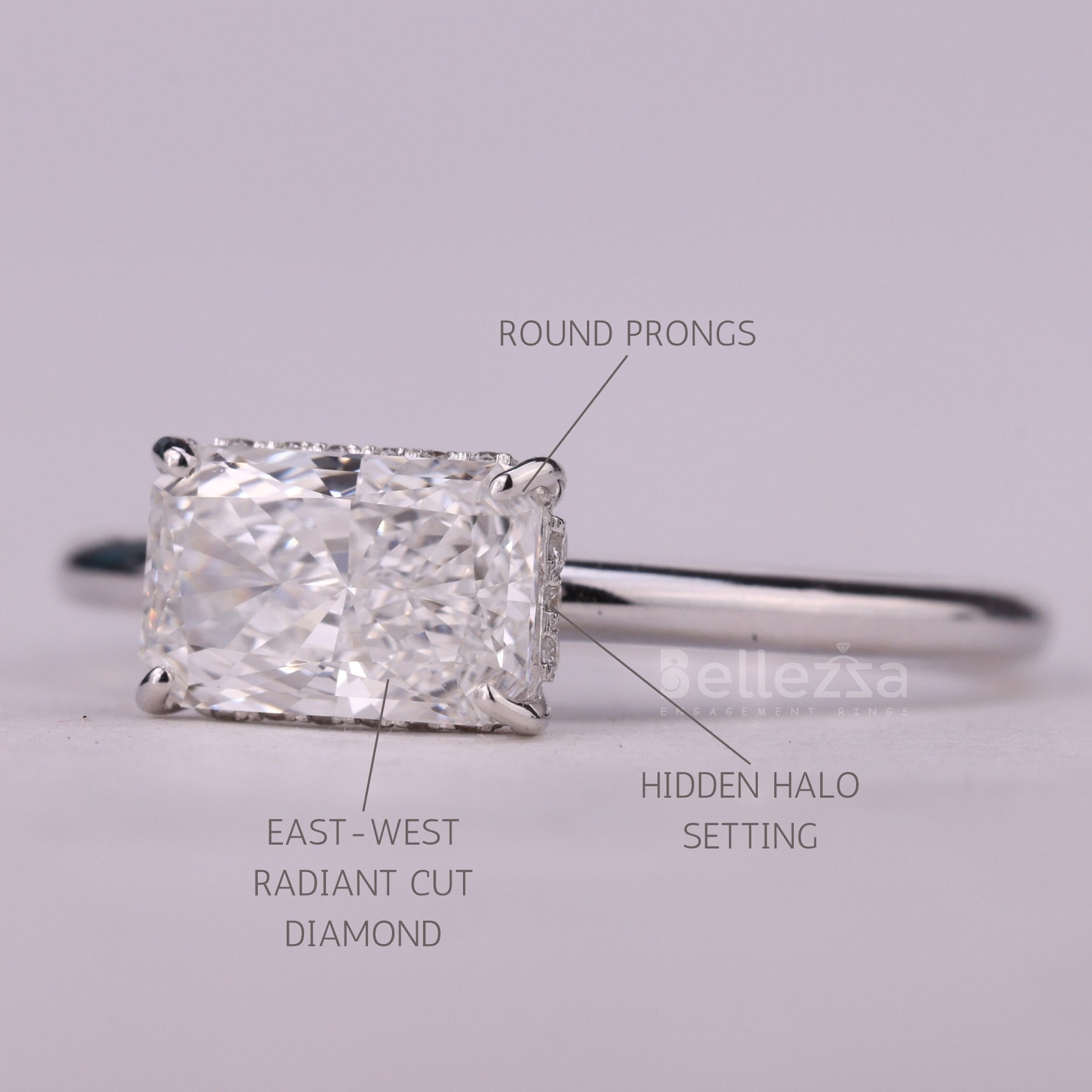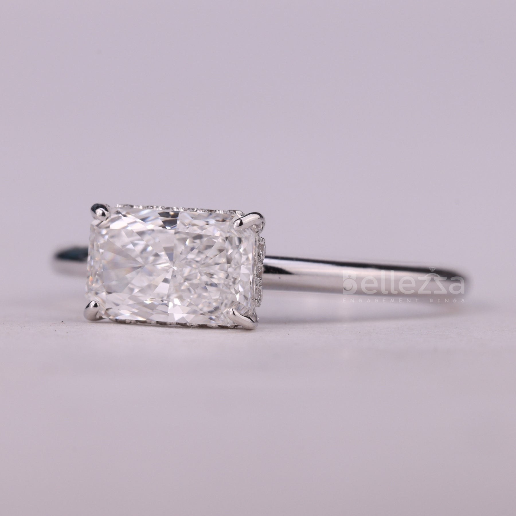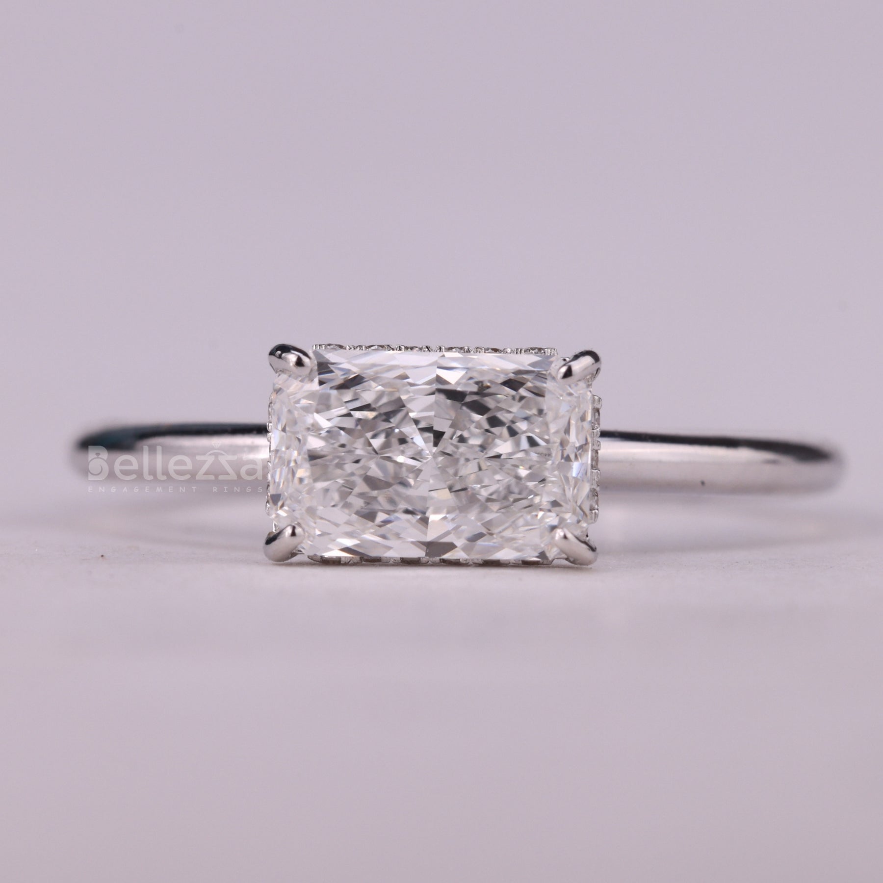 ✥The image is showing a 1.0CT East-West Radiant Cut Hidden Halo Moissanite Engagement Ring, designed to radiate elegance and modern brilliance. Featuring a stunning radiant cut center stone set in a chic east-west orientation, it delivers a unique twist on a timeless classic. The sparkling hidden halo detail enhances the center stone’s brilliance while adding extra depth and charm. This luxurious moissanite engagement ring combines durability, sophistication, and everyday elegance. With an impressive 1.0CT engagement ring, it ensures a radiant and graceful presence for your special day. Expertly crafted with precision, it embodies romance, refinement, and contemporary style. Celebrate your love with a ring that is both iconic and unforgettable.