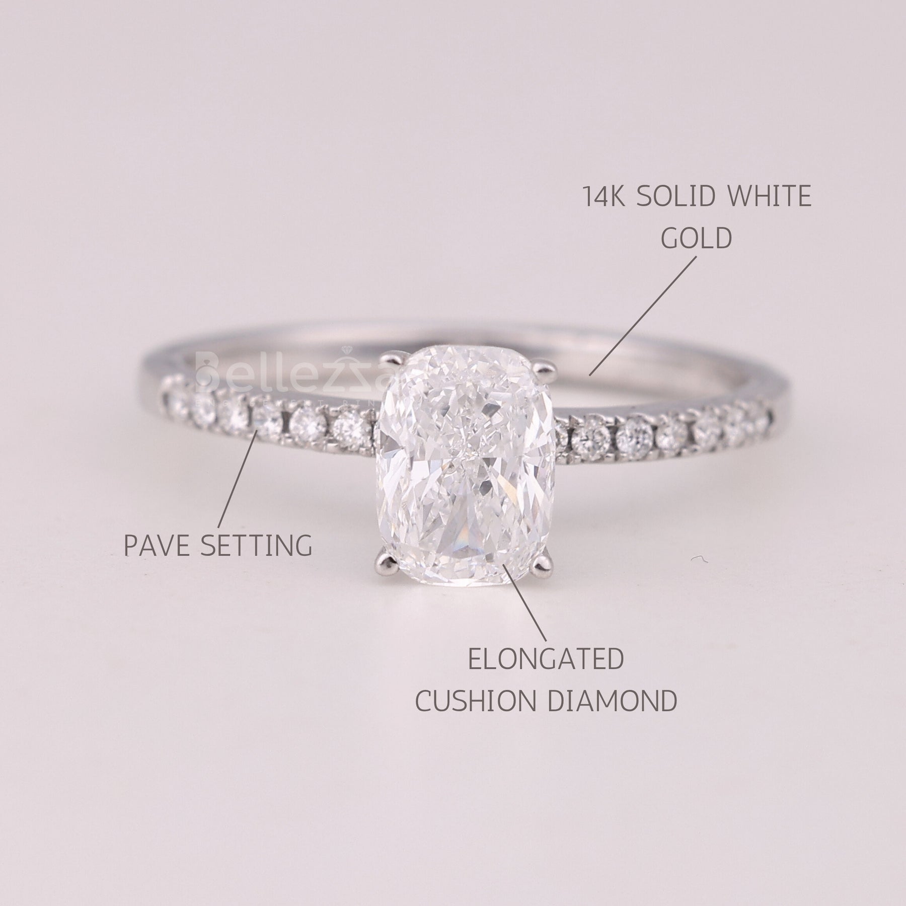 ✥The image above showcases our elegant 1.0CT Elongated Cushion Cut Pave Setting Engagement Ring, a timeless design that exudes sophistication and brilliance. Featuring a stunning Elongated Cushion Cut center stone, this ring is enhanced by a sparkling Pave Setting along the band, adding continuous shimmer and elegance. Crafted with premium materials, it delivers exceptional sparkle while ensuring durability for lasting beauty. Its polished band beautifully highlights the centerpiece, making it a perfect Engagement Ring for proposals, anniversaries, or milestone celebrations. Ideal for brides seeking classic charm with modern flair, this piece embodies romance, style, and superior craftsmanship. Celebrate your love story with a radiant creation that captures hearts instantly.