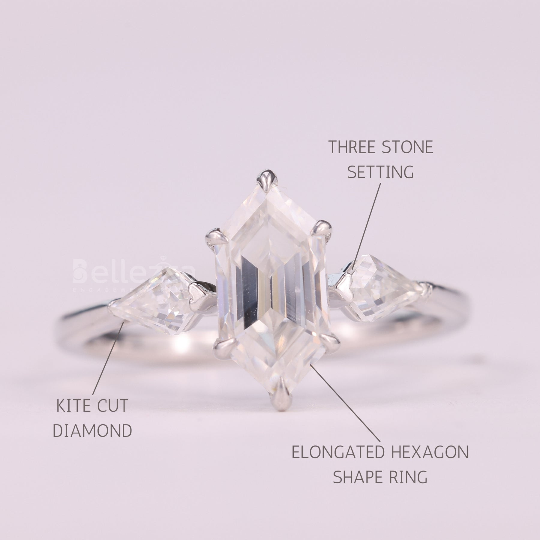 ✥The image above highlights our elegant 1.0CT Elongated Hexagon Cut Diamond Three Stone Engagement Ring, a modern masterpiece with timeless appeal. This stunning ring features a unique Elongated Hexagon Cut center stone that stands out with its striking geometry and brilliance. Flanked by two sparkling accent stones, the Three Stone design symbolizes the past, present, and future of your love story. Crafted with precision, the shimmering Diamond ensures exceptional sparkle, while the sleek band adds a touch of sophistication. This extraordinary Engagement Ring is perfect for those seeking a distinctive yet classic style. Designed to be durable and radiant, it’s ideal for proposals, anniversaries, or special milestones. Celebrate your unique love with a ring that blends artistry, symbolism, and elegance.