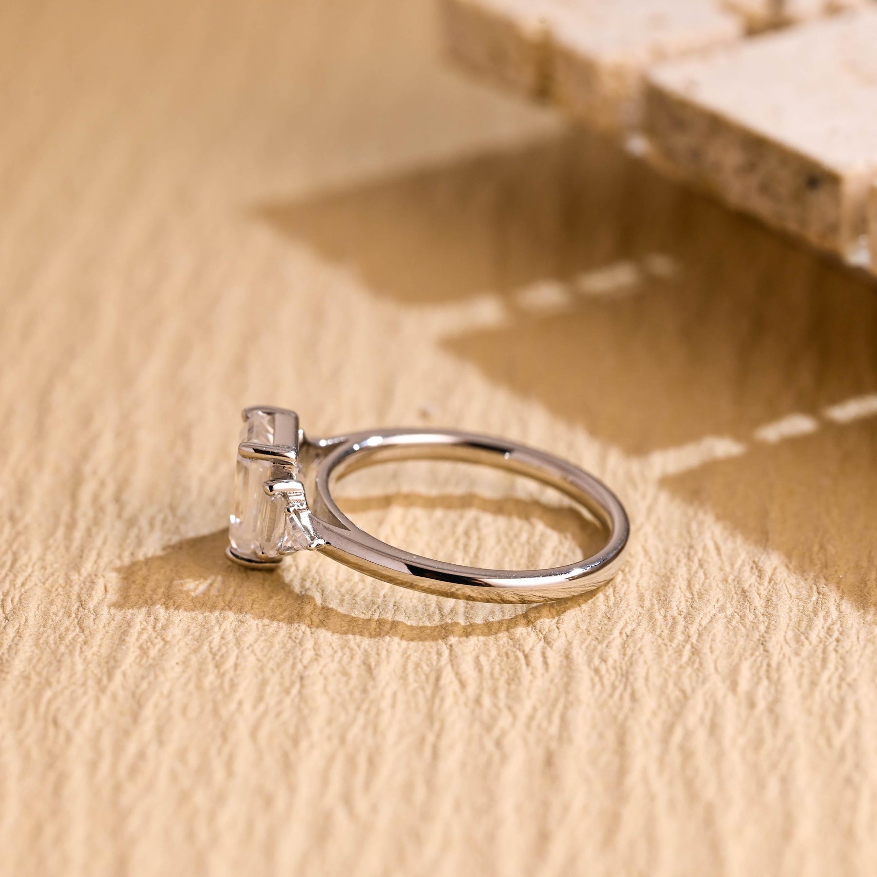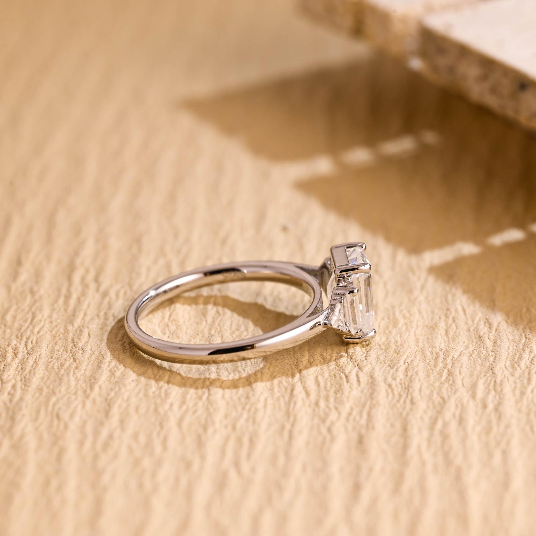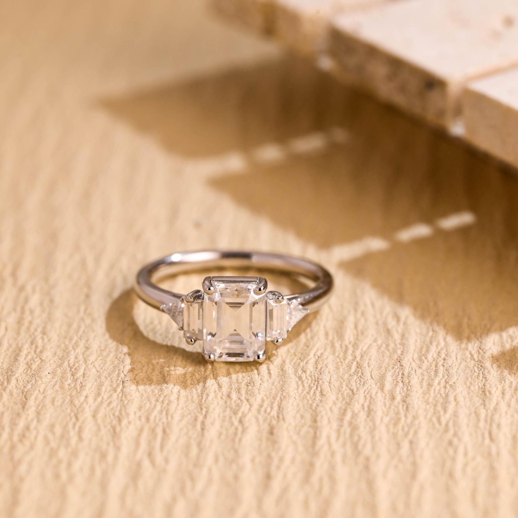 1.0CT Emerald Cut Cluster Diamond Moissanite Engagement Ring