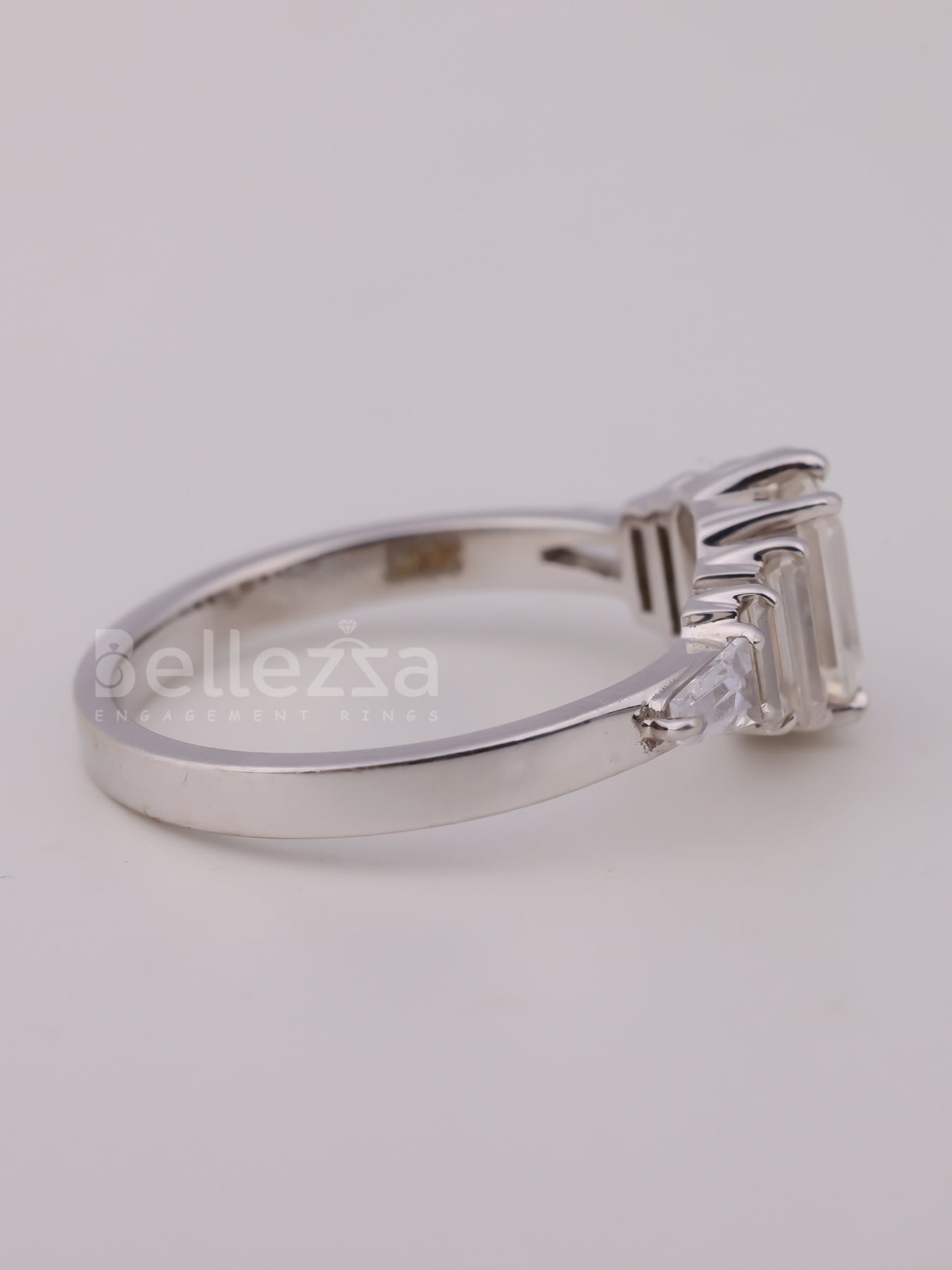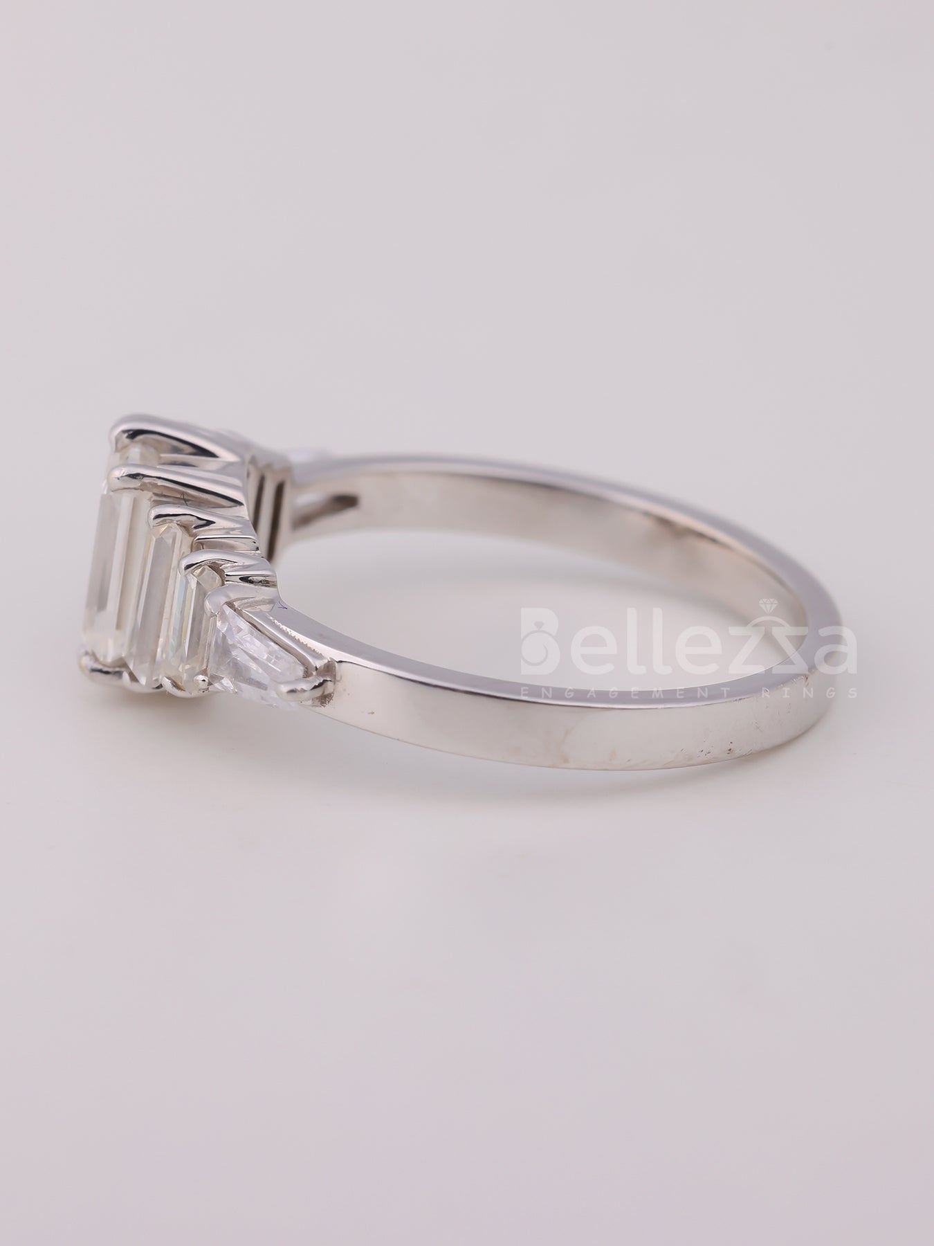 1.0CT Emerald Cut Cluster Diamond Moissanite Engagement Ring