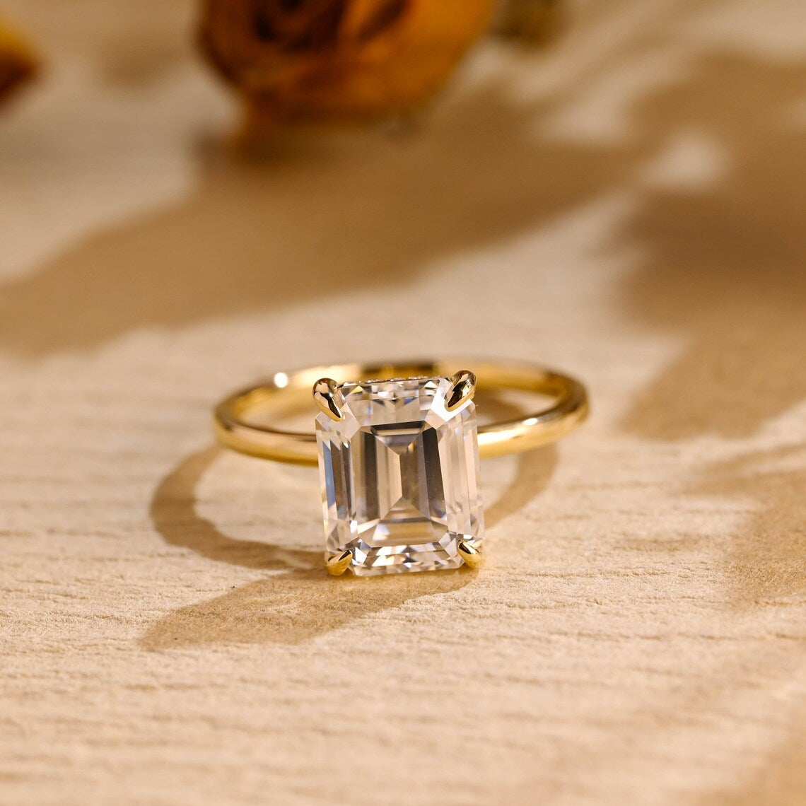 3.50CT Emerald Cut Hidden halo Moissanite Engagement Ring
