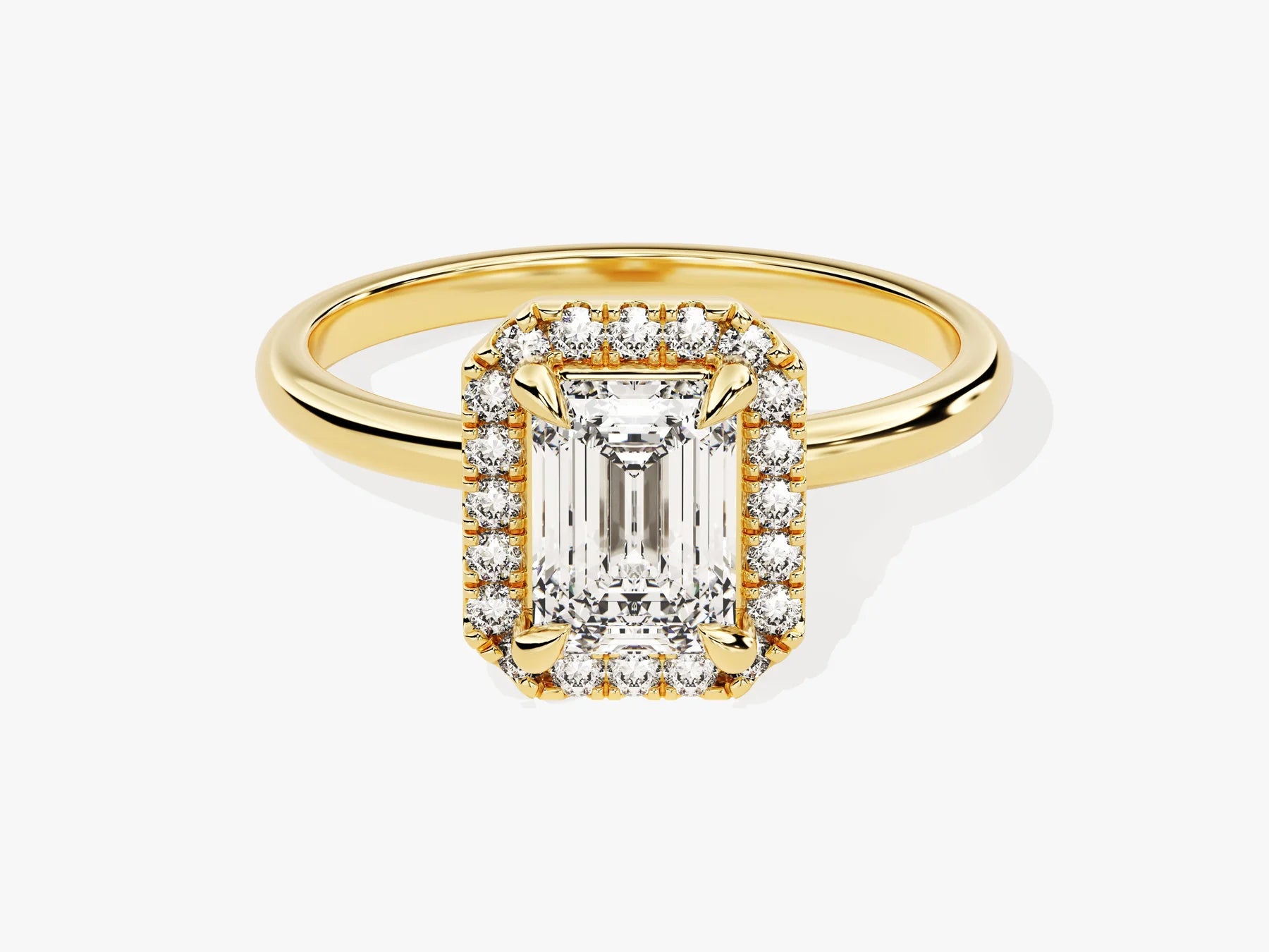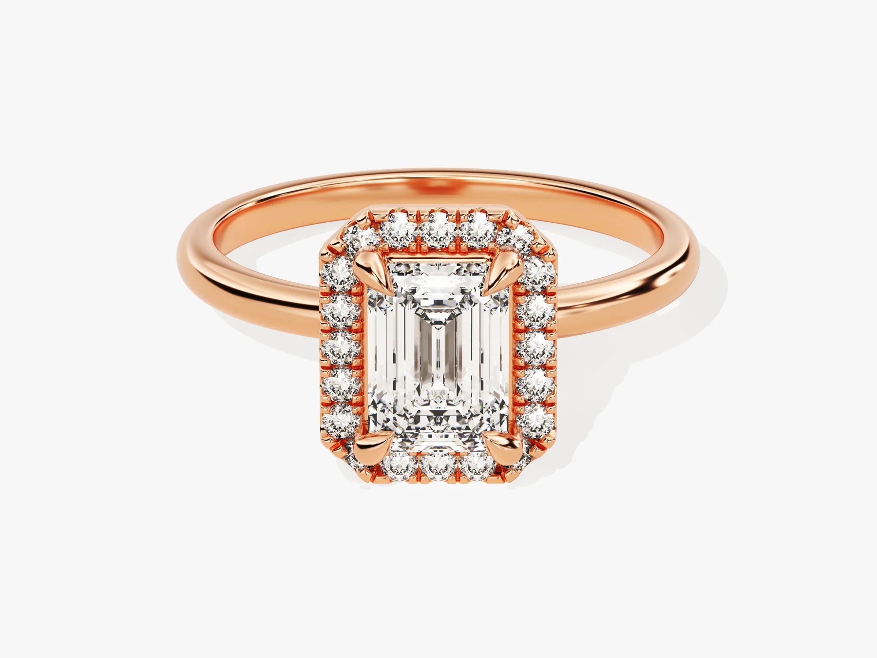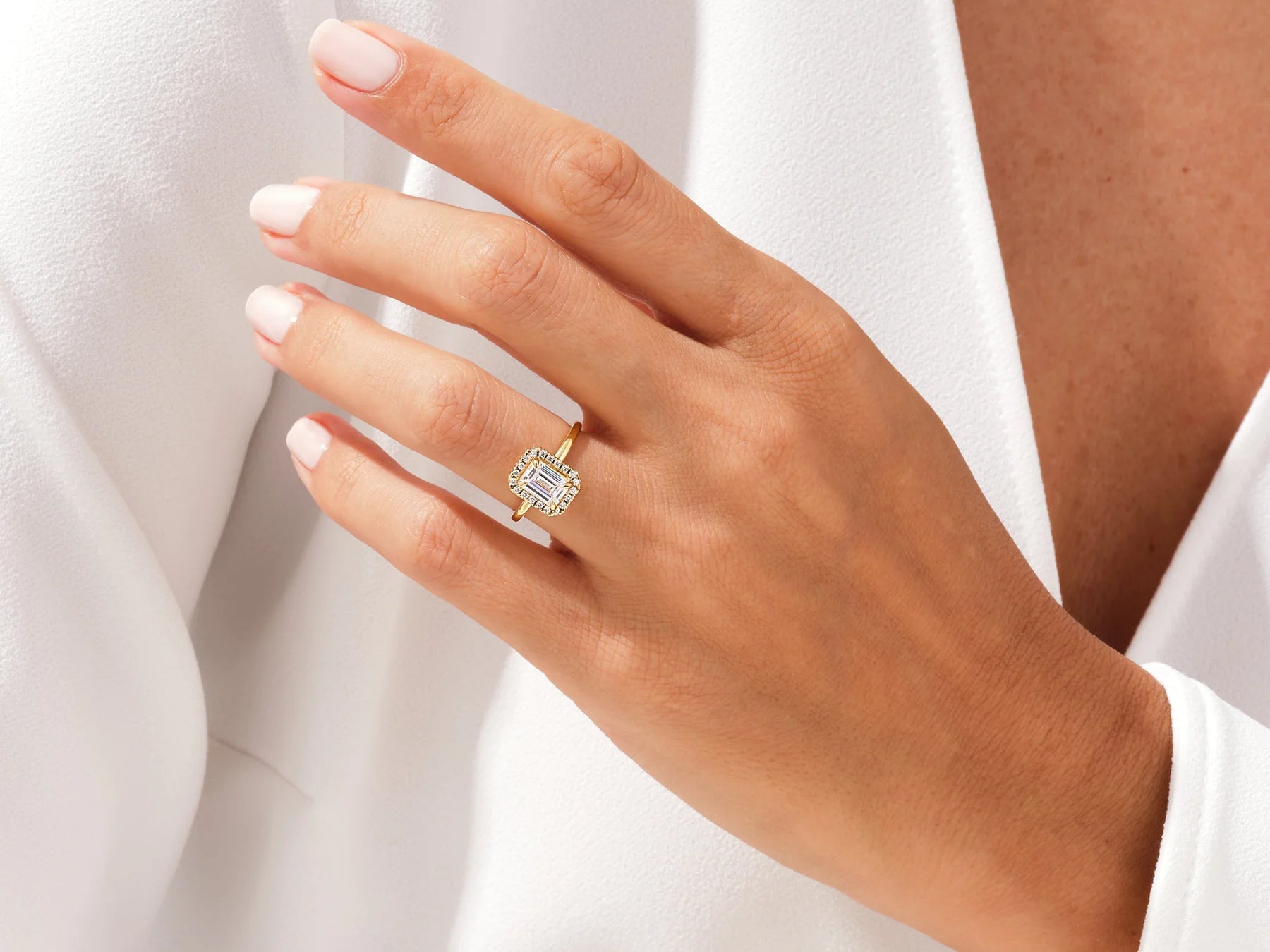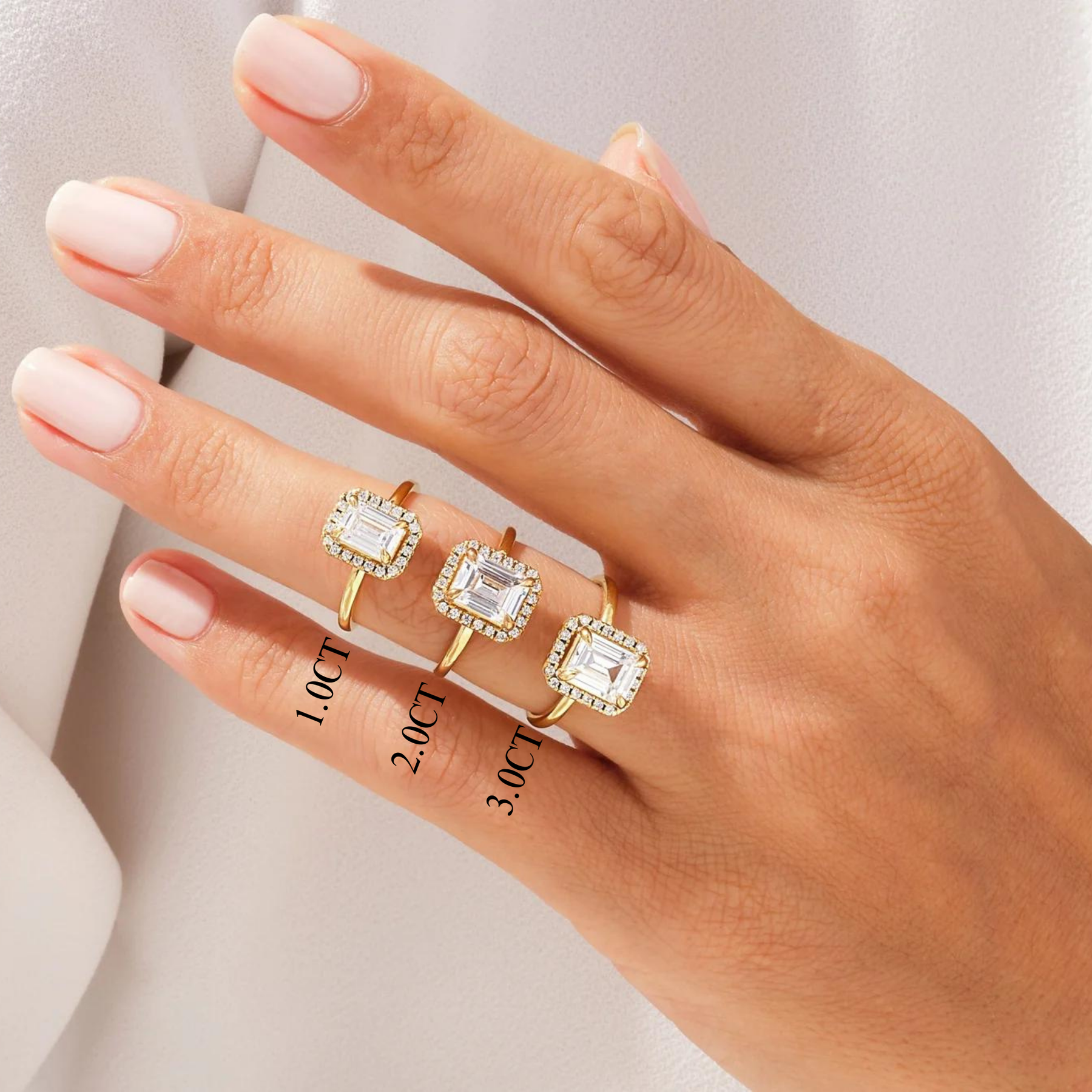 1.0CT Emerald Diamond Halo Moissanite Engagement Ring