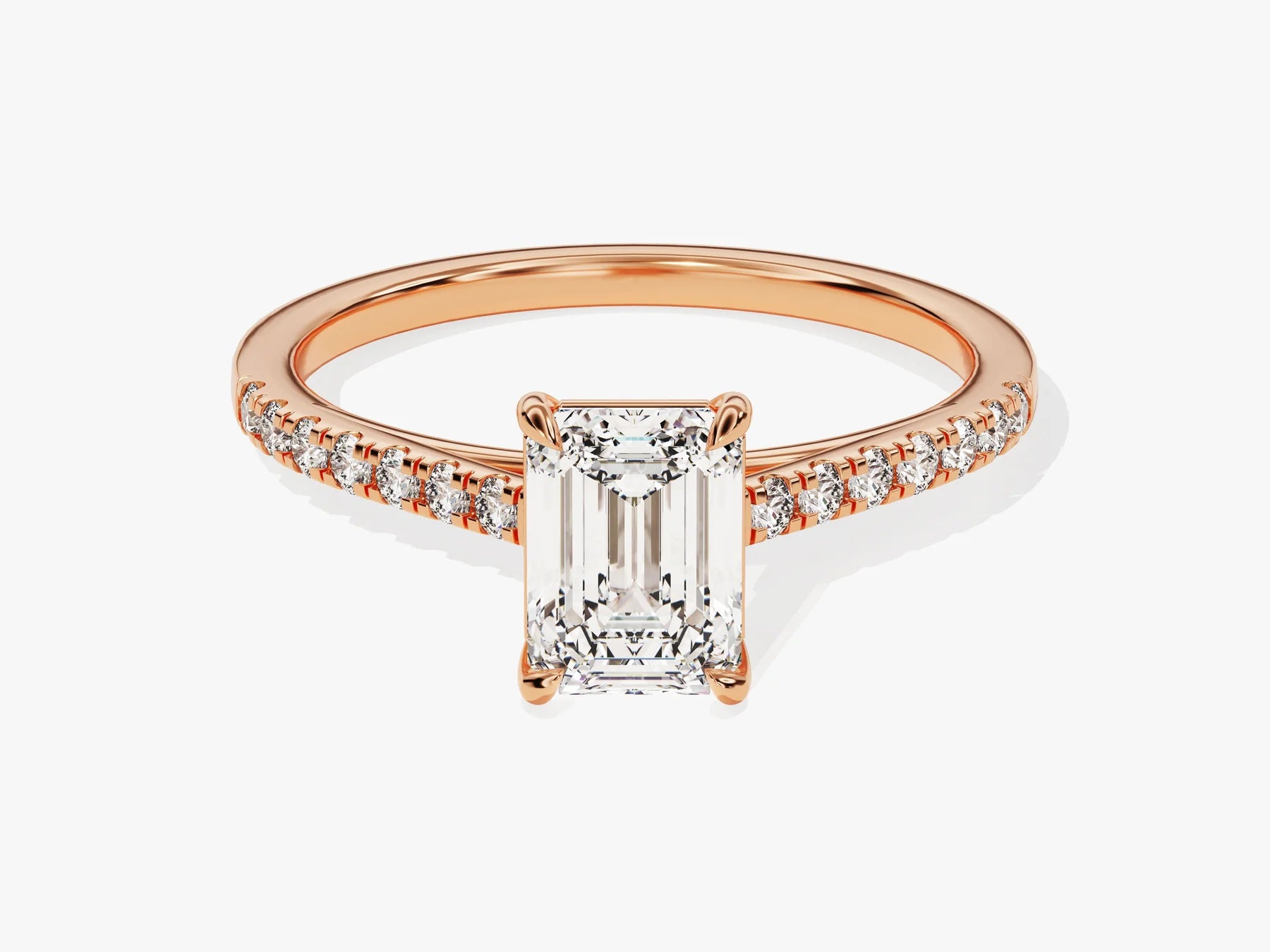 1.0CT Emerald Diamond Pave Setting Moissanite Engagement Ring