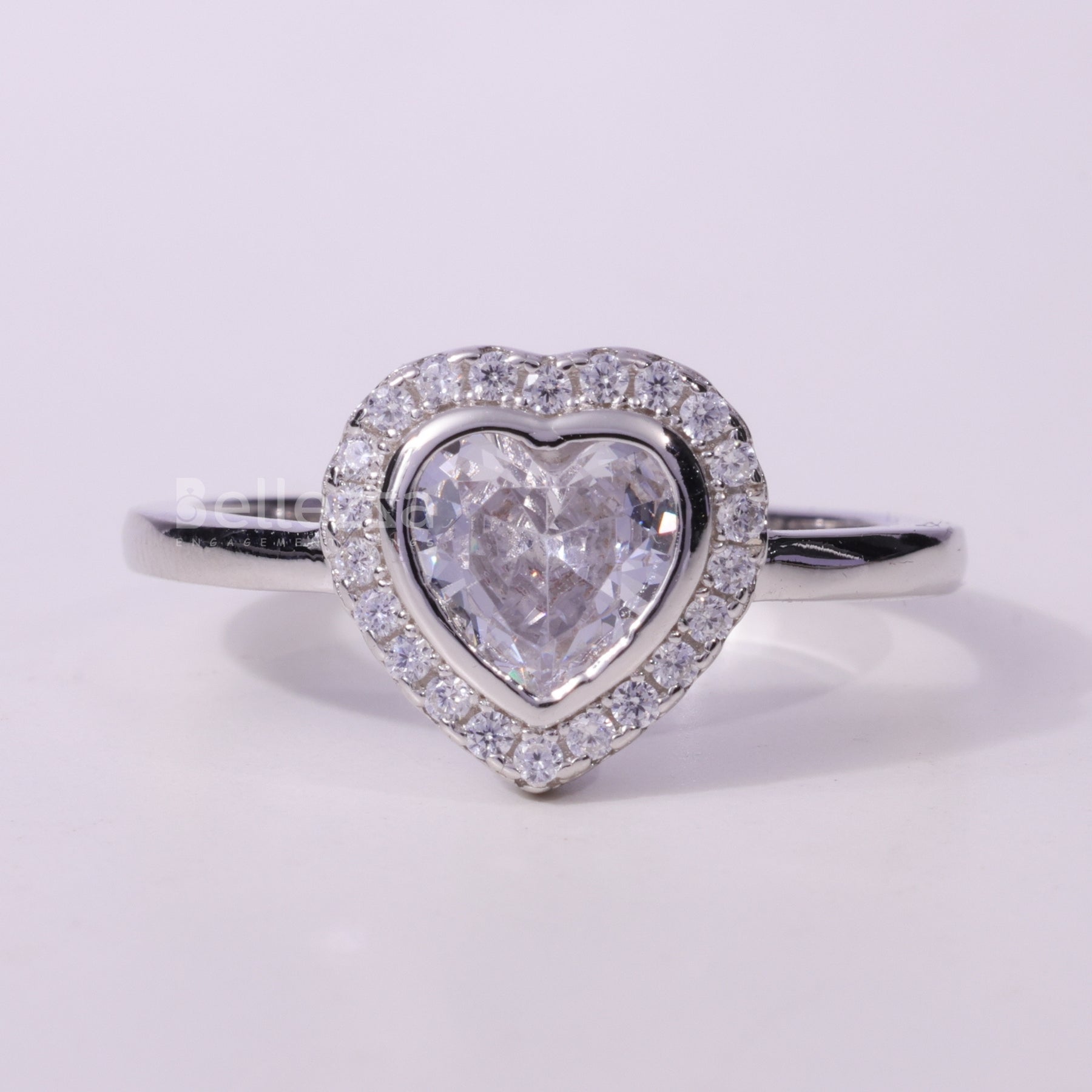 1.0CT Heart Cut Halo Setting Moissanite Engagement Ring