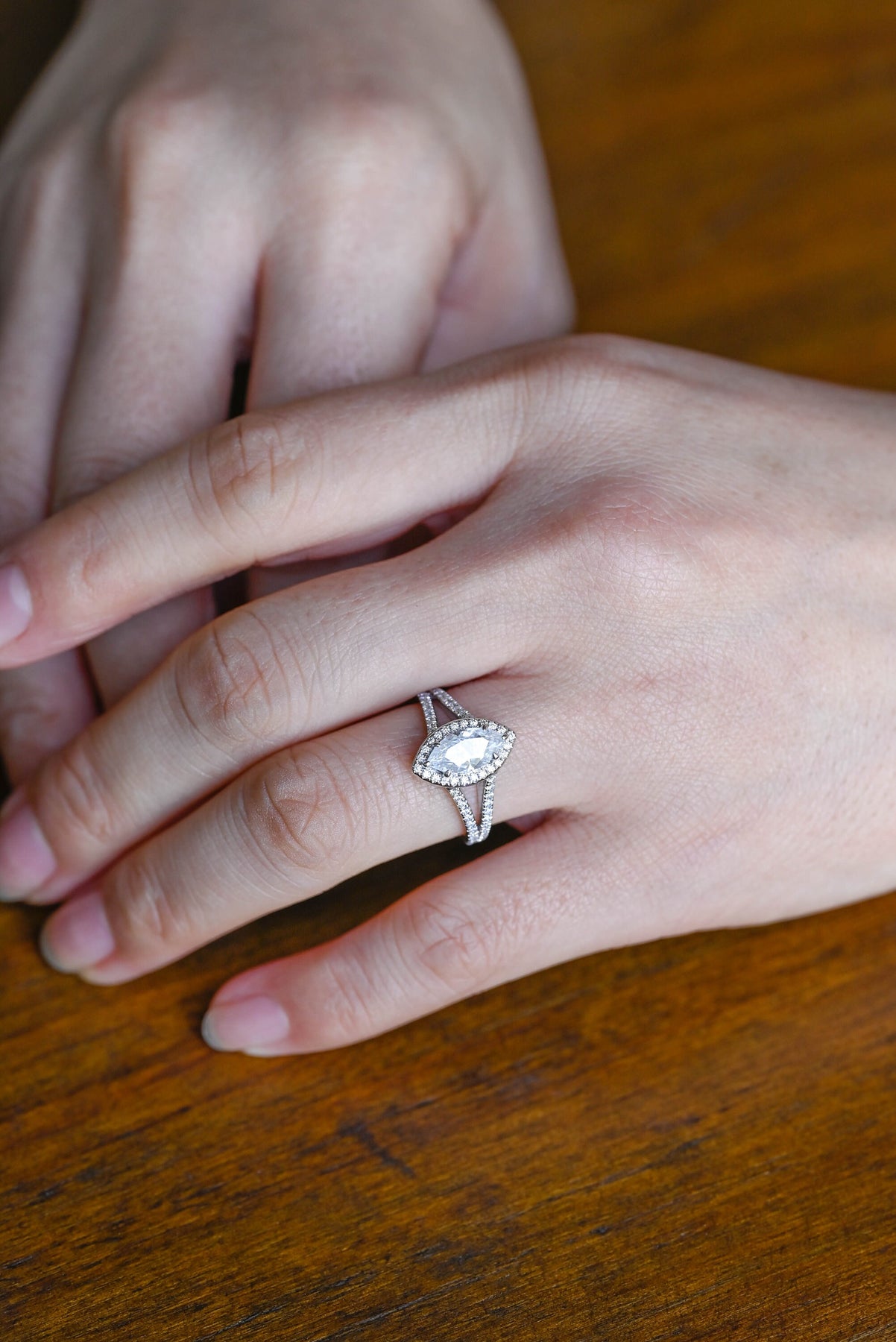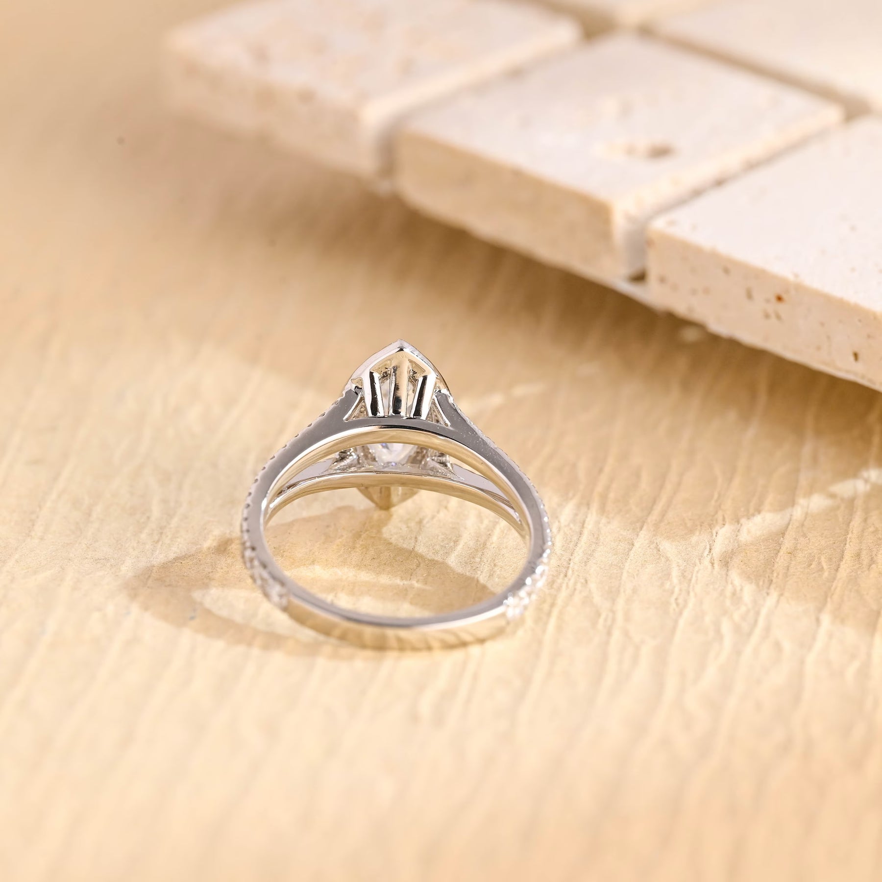 1.0CT Marquise Cut Halo Diamond Moissanite Engagement Ring
