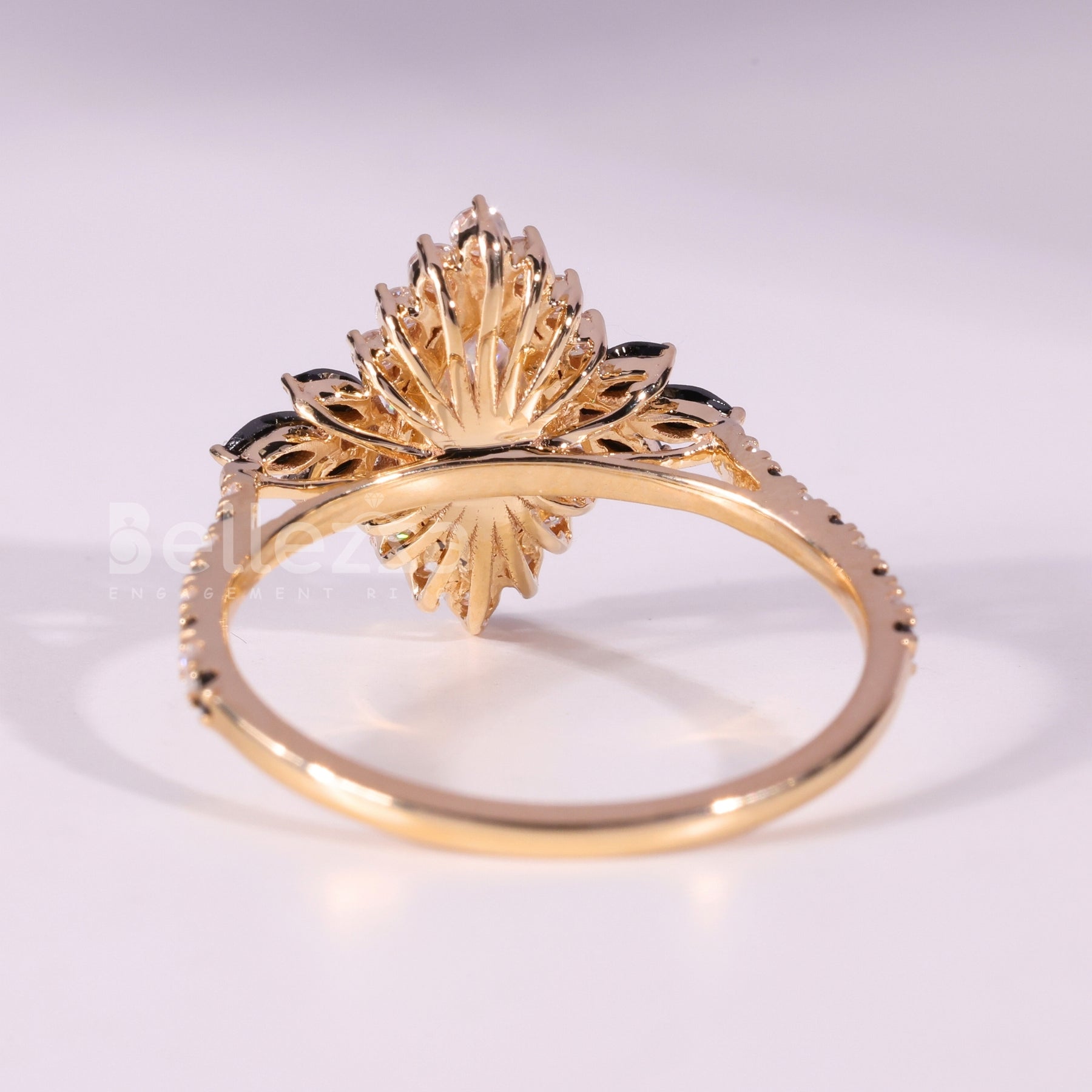1.0CT Marquise Cut Unique Black Cluster Diamond Engagement Ring