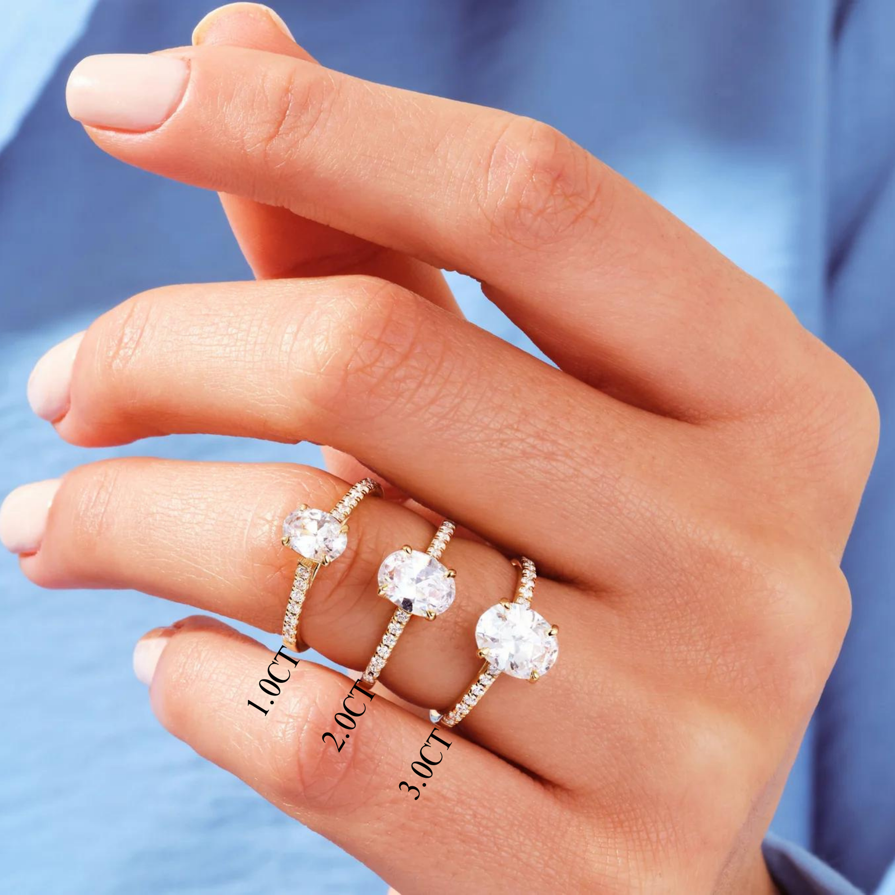 1.0CT Oval Brilliant Diamond Pave Setting Moissanite Engagement Ring