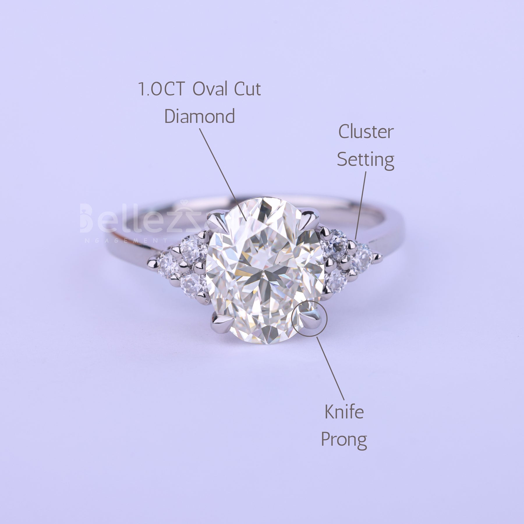 1.0CT Oval Cut Cluster Diamond Moissanite Engagement Ring