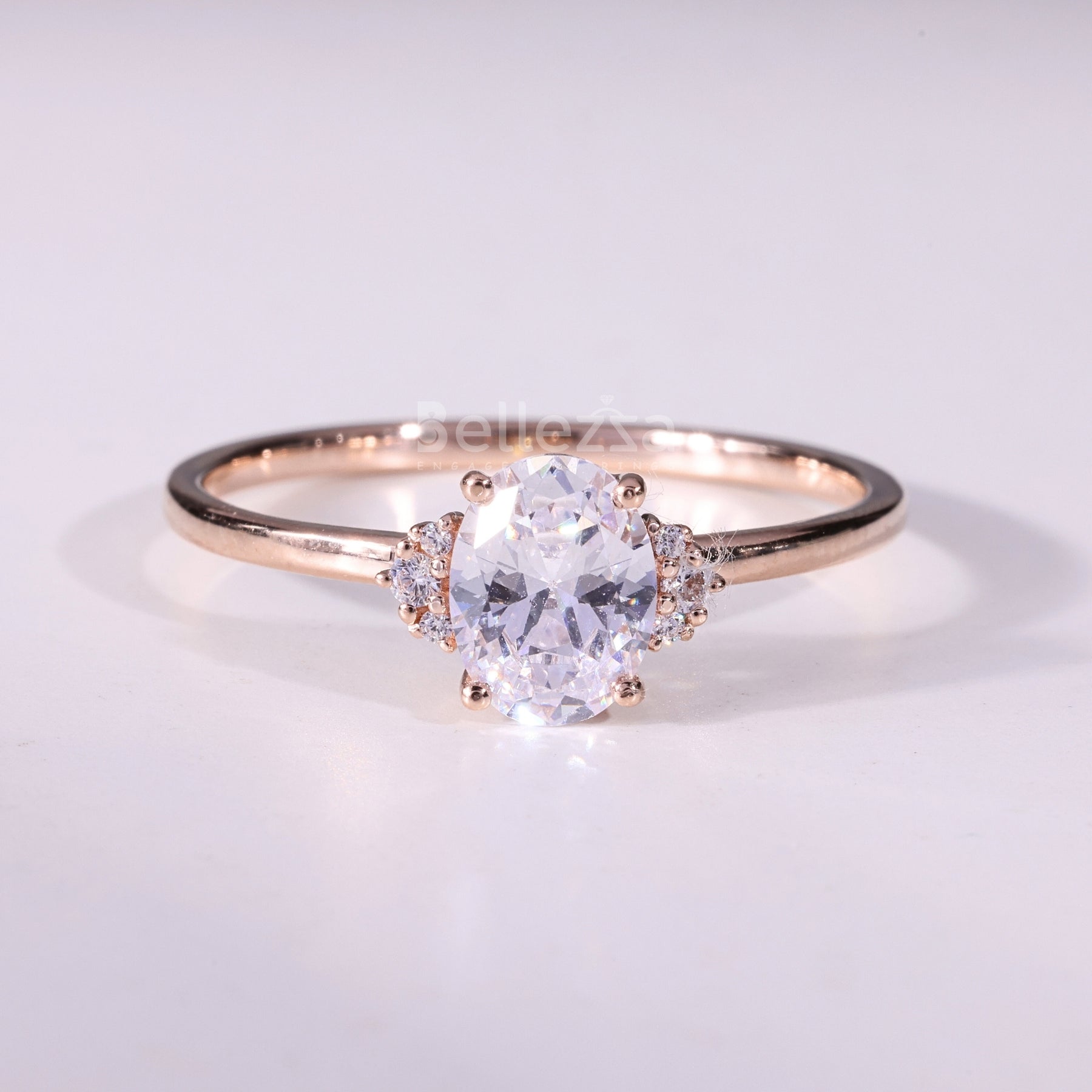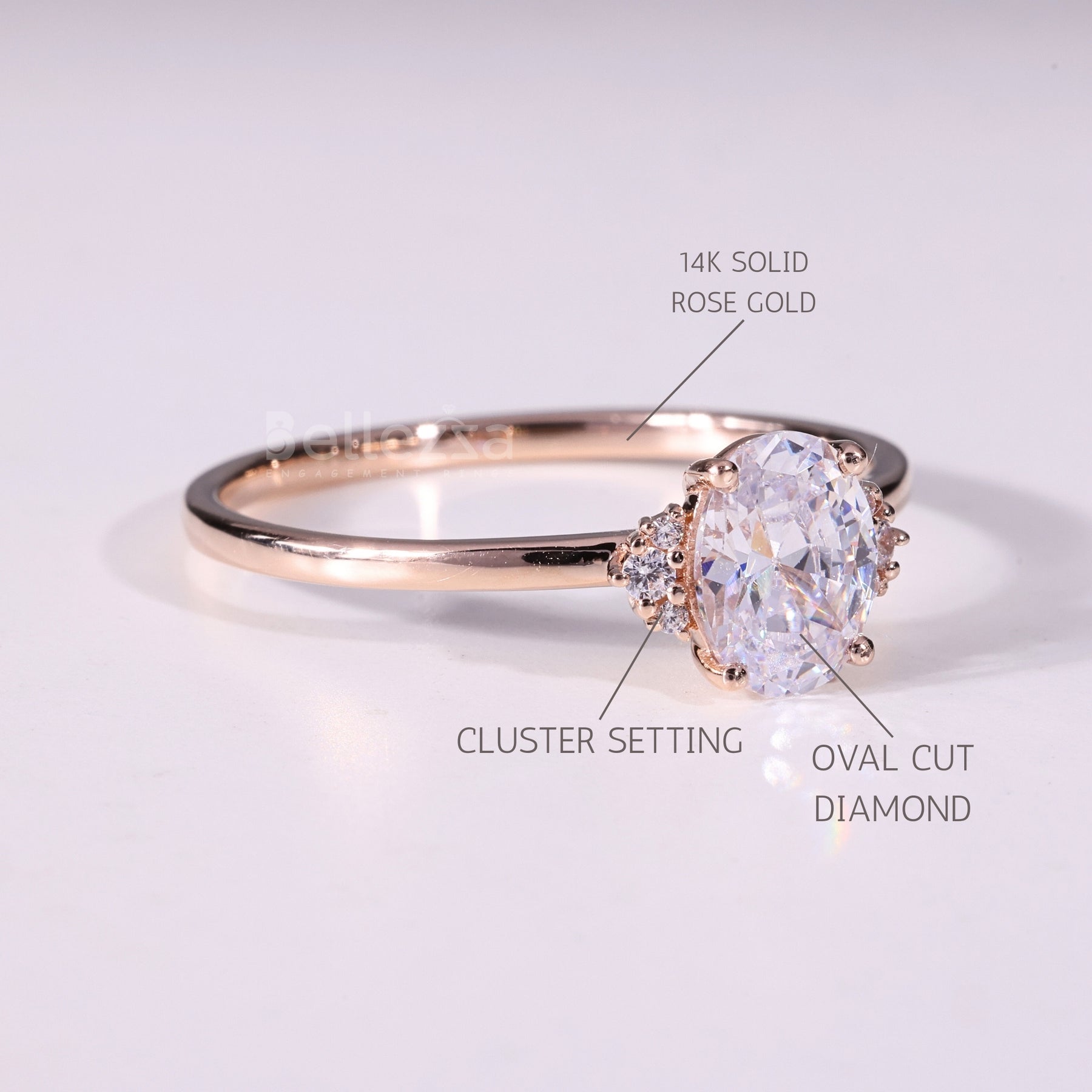 1.0CT Oval Cut Cluster Diamond Moissanite Engagement Ring