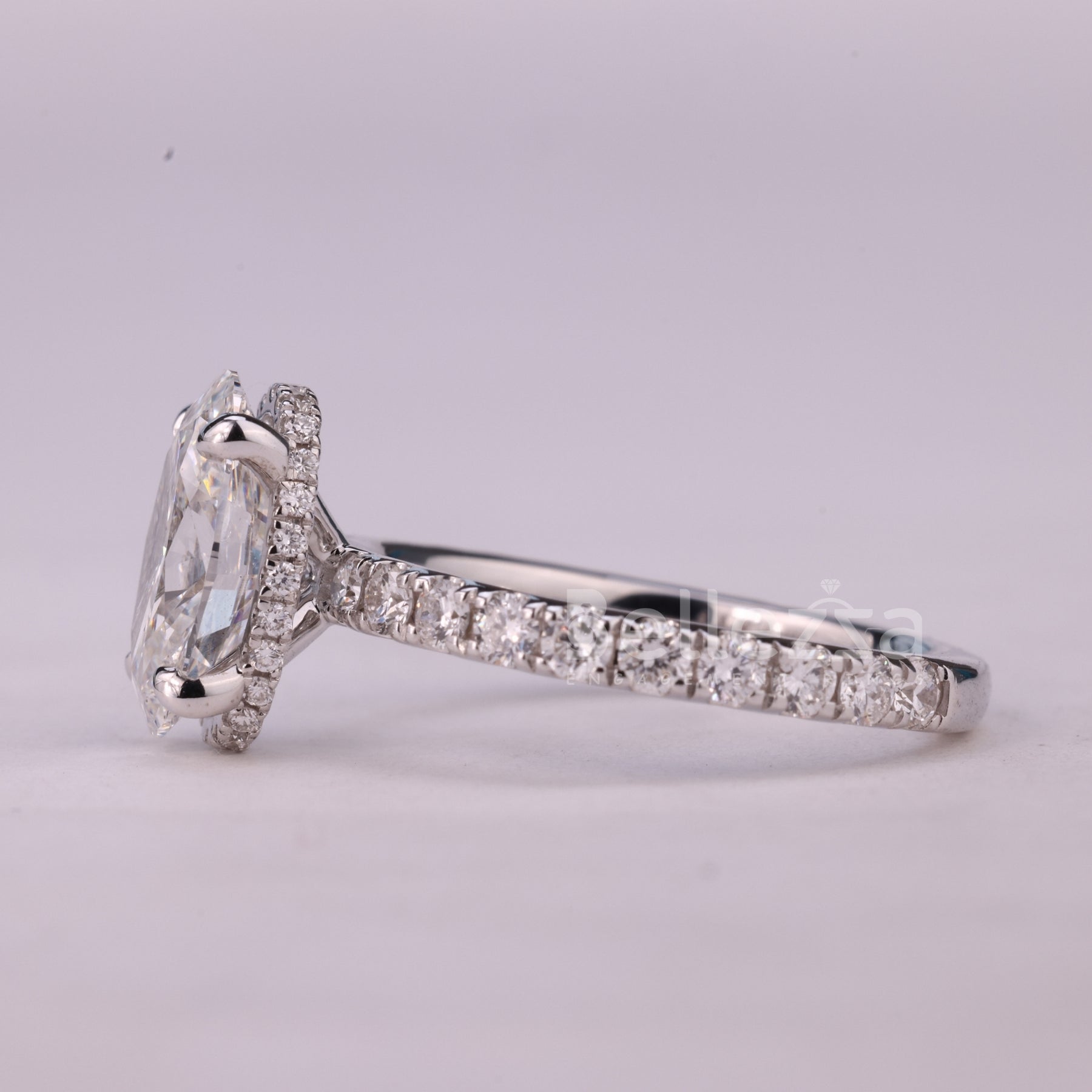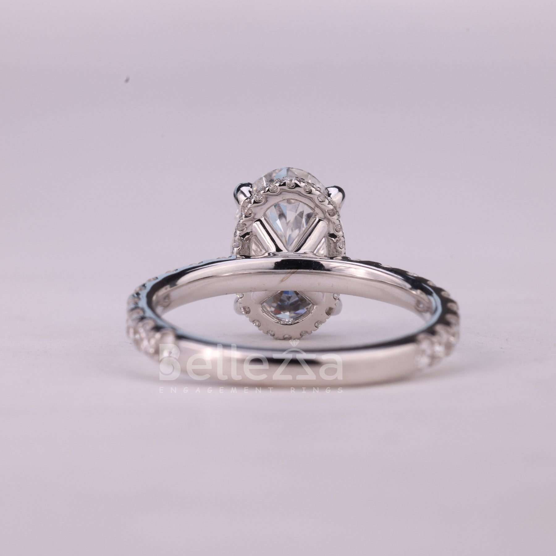 1.0CT Oval Cut Hidden Halo Pave Setting Moissanite Engagement Ring