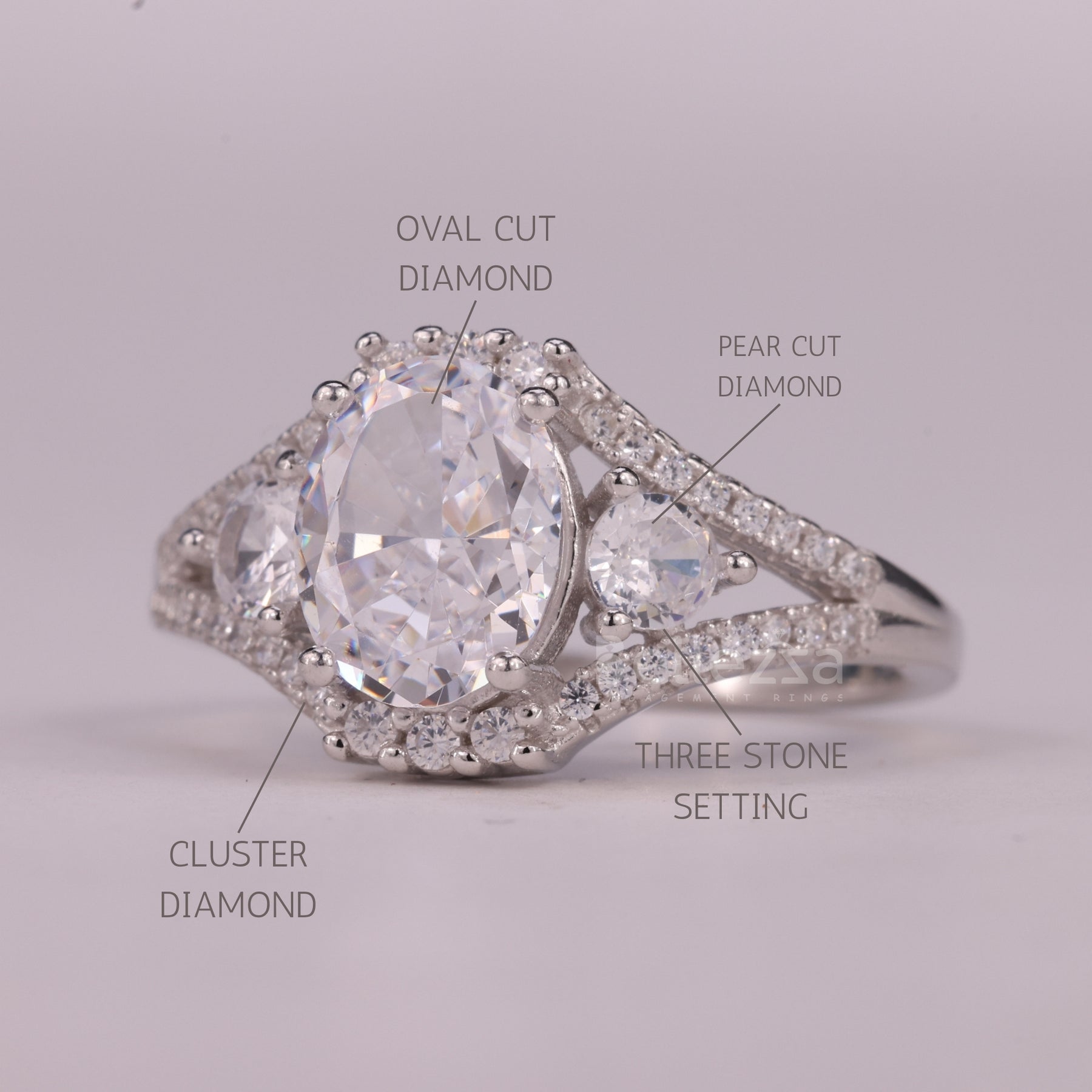 ✥The image showcases our elegant 1.0CT Oval Cut Three Stone Split Shank Pave Set Engagement Ring, a timeless blend of brilliance and sophistication. Featuring a dazzling oval cut center stone with two side stones, this design symbolizes past, present, and future love. The delicate split shank pave setting enhances sparkle, making it an extraordinary choice for a proposal. Expertly crafted for elegance and durability, this ring radiates luxury at an accessible price. Perfect for brides seeking a unique yet classic style, it shines as a meaningful three stone engagement ring. This stunning pave set engagement ring is ideal for creating unforgettable moments of love.