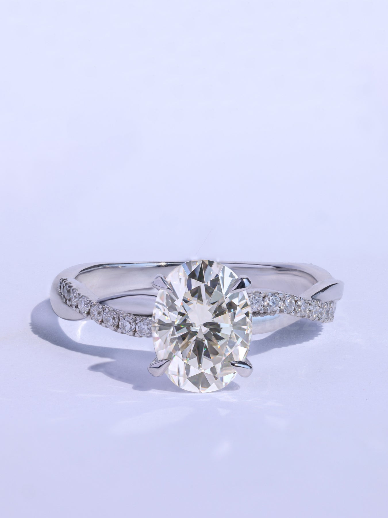 1.0CT Oval Cut Twisted Pave Setting Moissanite Engagement Ring