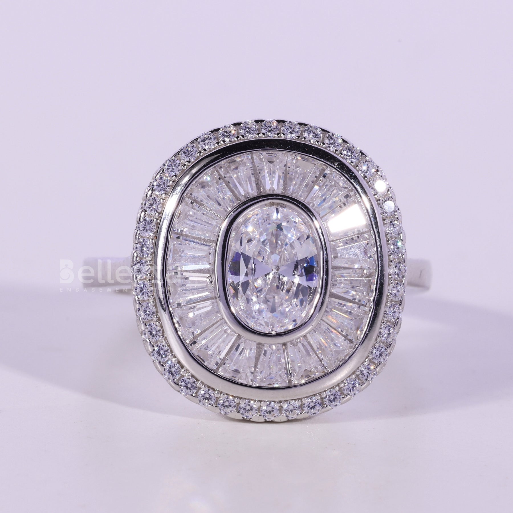 1.0CT Oval Cut Unique Cluster Diamond Moissanite Engagement Ring