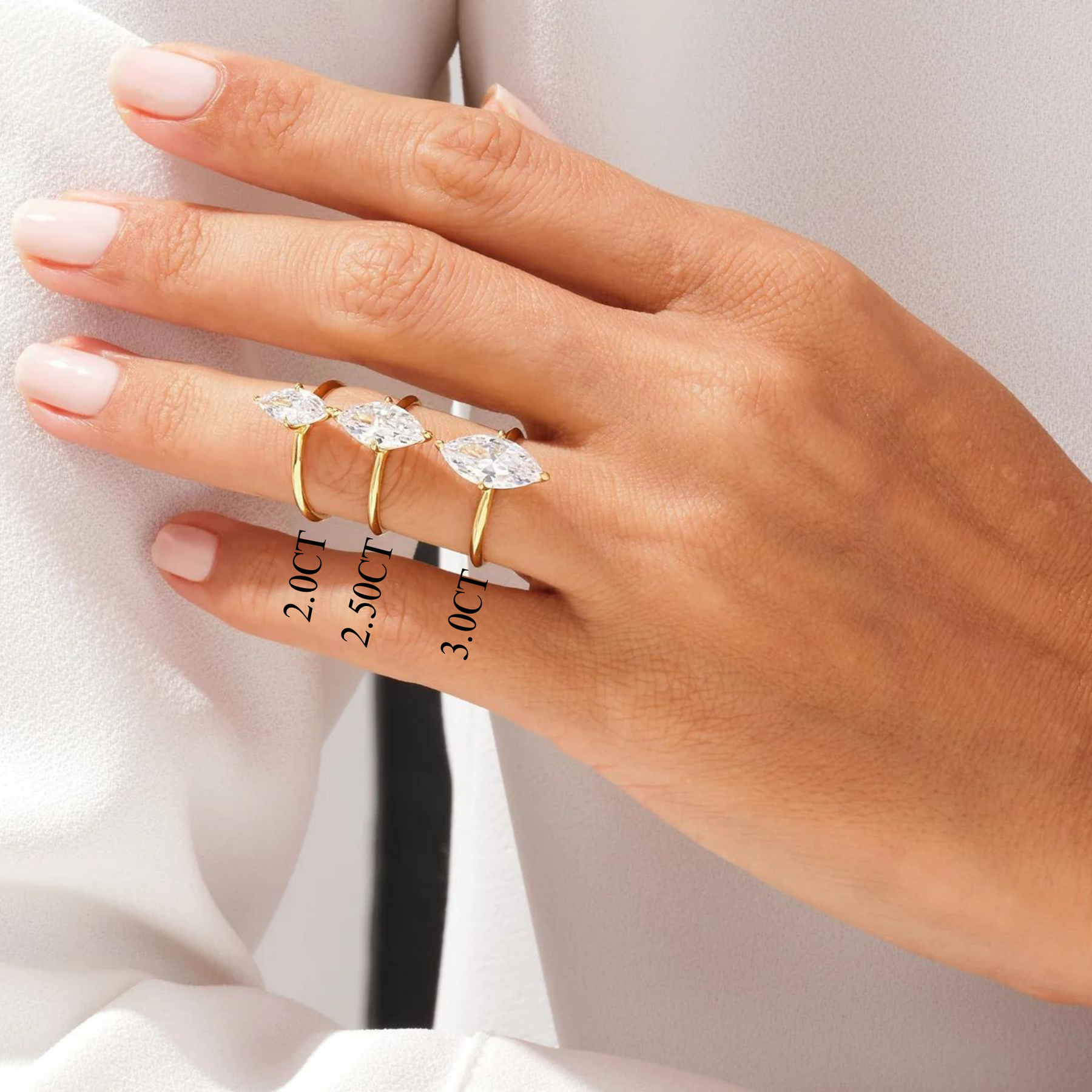 ✥This elegant 1.0CT Marquise Cut Moissanite Engagement Ring with a Knife Edge Solitaire Setting is a perfect fusion of vintage charm and modern sophistication. The centerpiece features a dazzling 1.0CT marquise cut moissanite, celebrated for its elongated shape and brilliant facets that create a captivating sparkle and an illusion of greater size. The sleek knife-edge band adds a contemporary touch, beautifully highlighting the center stone while ensuring a comfortable fit. Ideal for those who appreciate a distinctive and refined design, this marquise cut moissanite ring serves as a luxurious and affordable alternative to traditional diamonds, symbolizing everlasting love and commitment.
