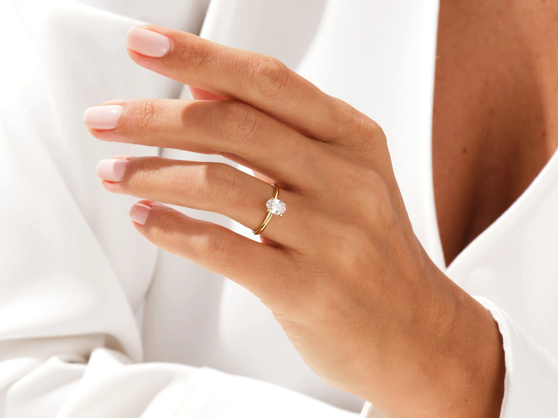 1.0CT Oval Diamond Knife Edge Solitaire Moissanite Engagement Ring