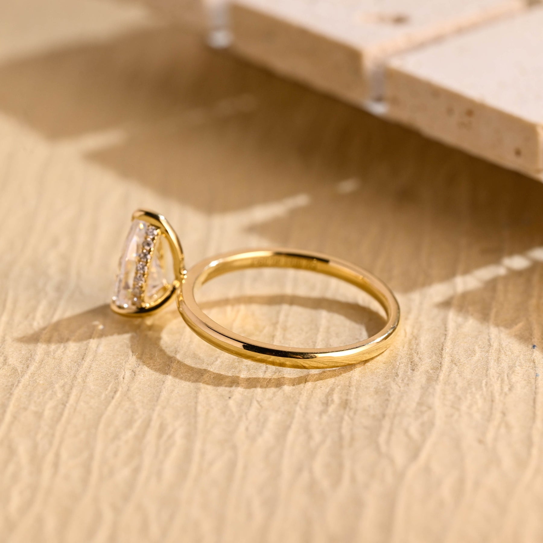 1.50CT Pear Cut Diamond Hidden Halo Moissanite Engagement Ring