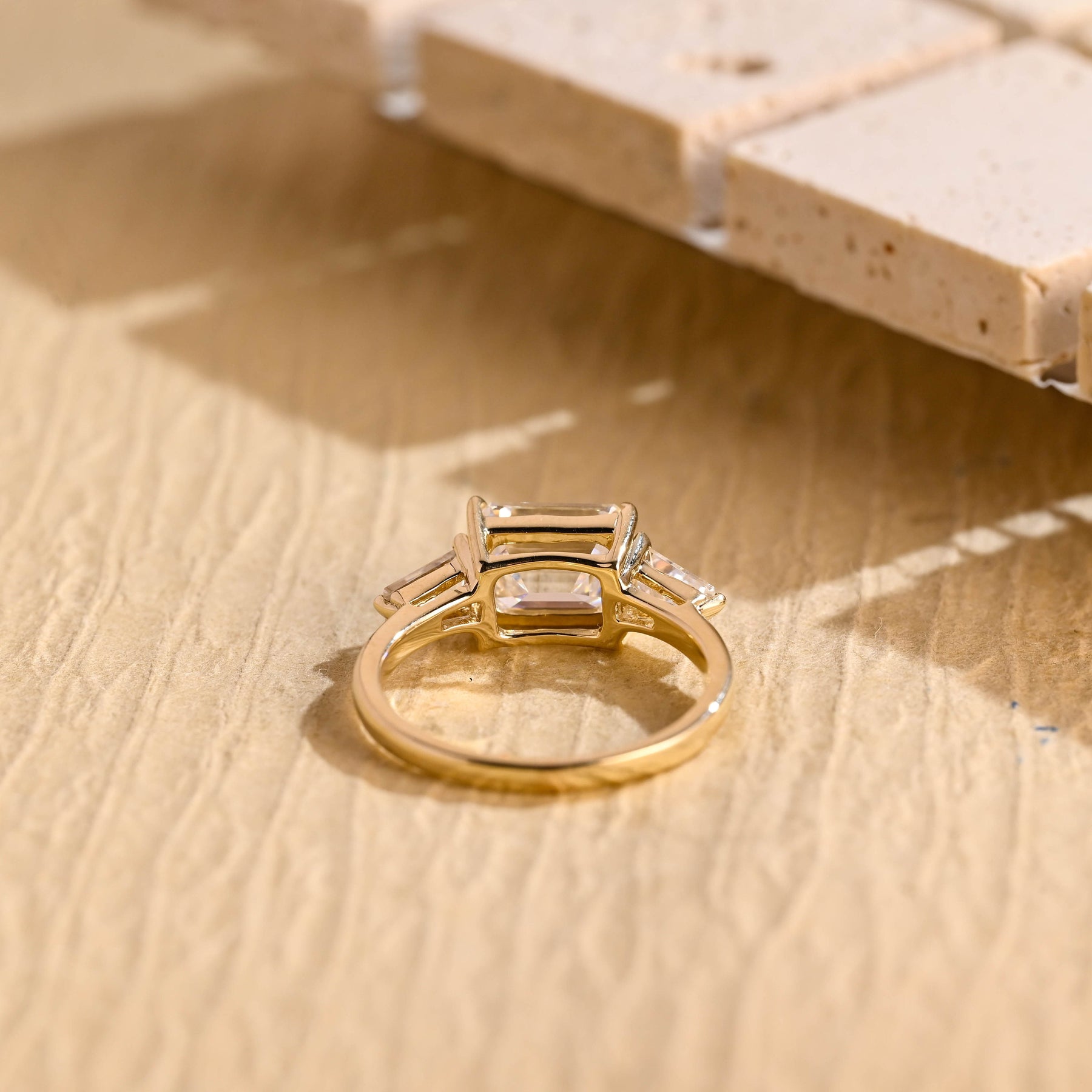 1.0CT East West Emerald Cut Three Stone Moissanite Engagement Ring