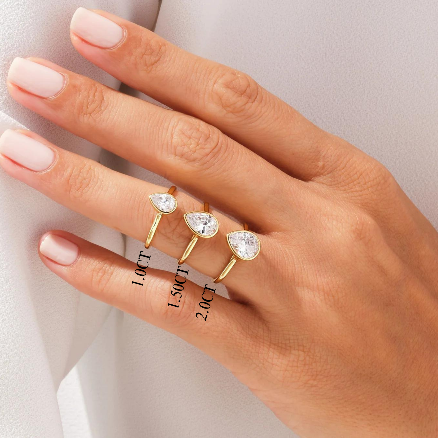 1.0CT Pear Diamond Bezel Setting Solitaire Moissanite Engagement Ring