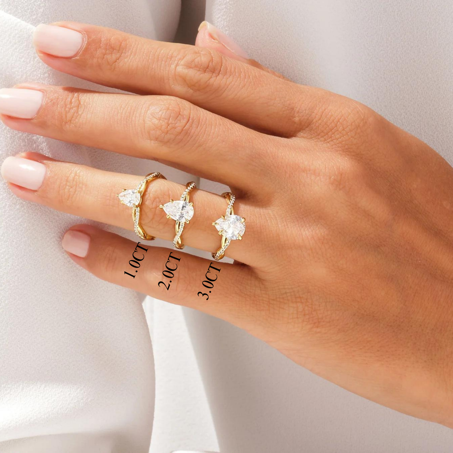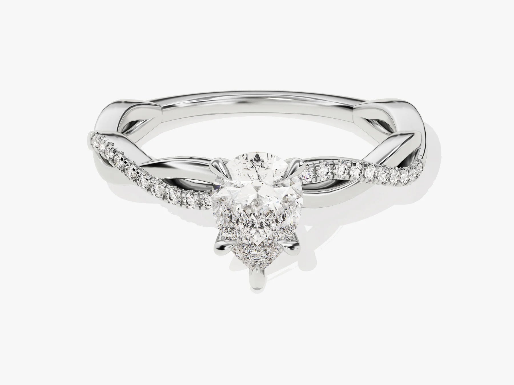 1.0CT Pear Diamond Twisted Pave Setting Moissanite Engagement Ring