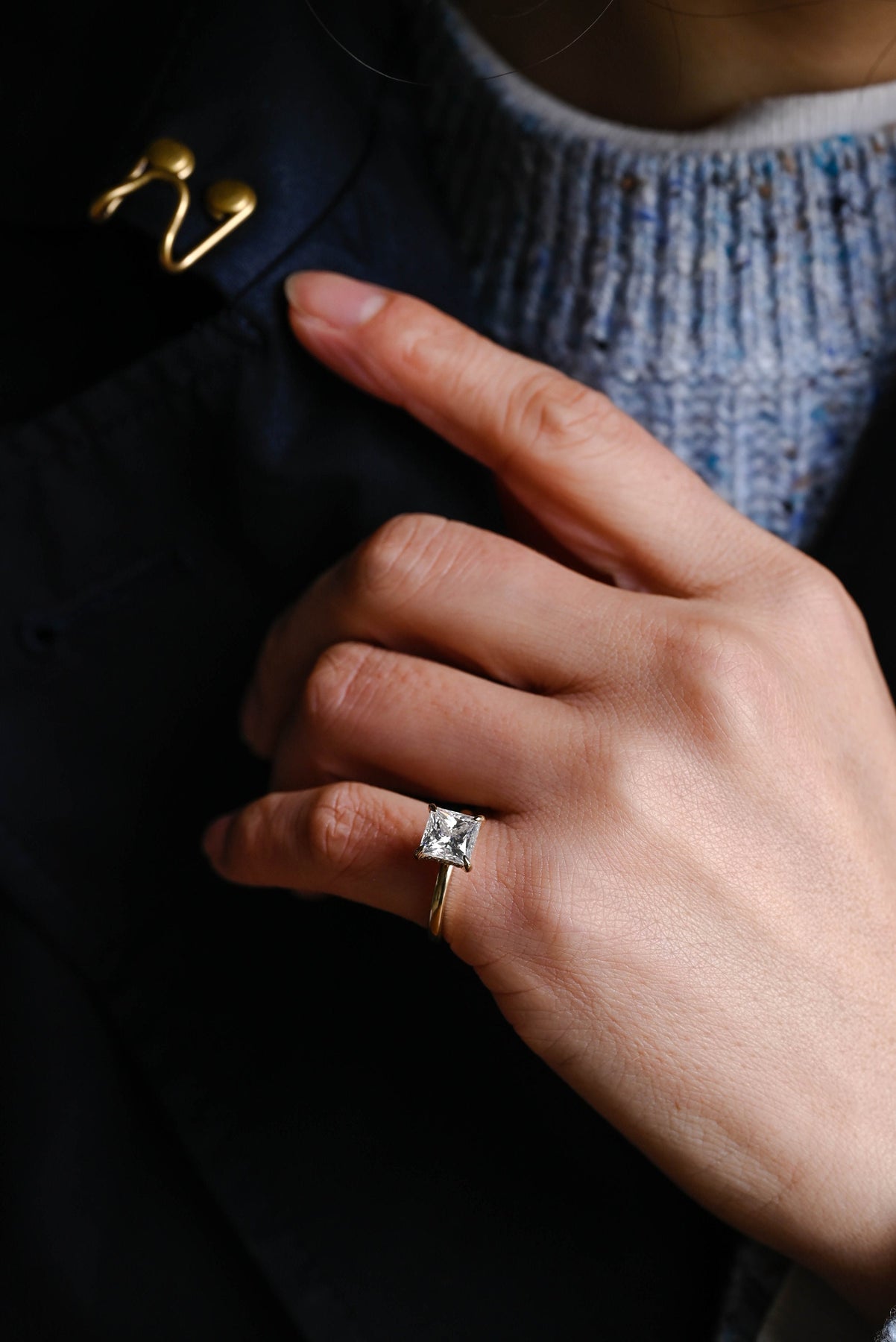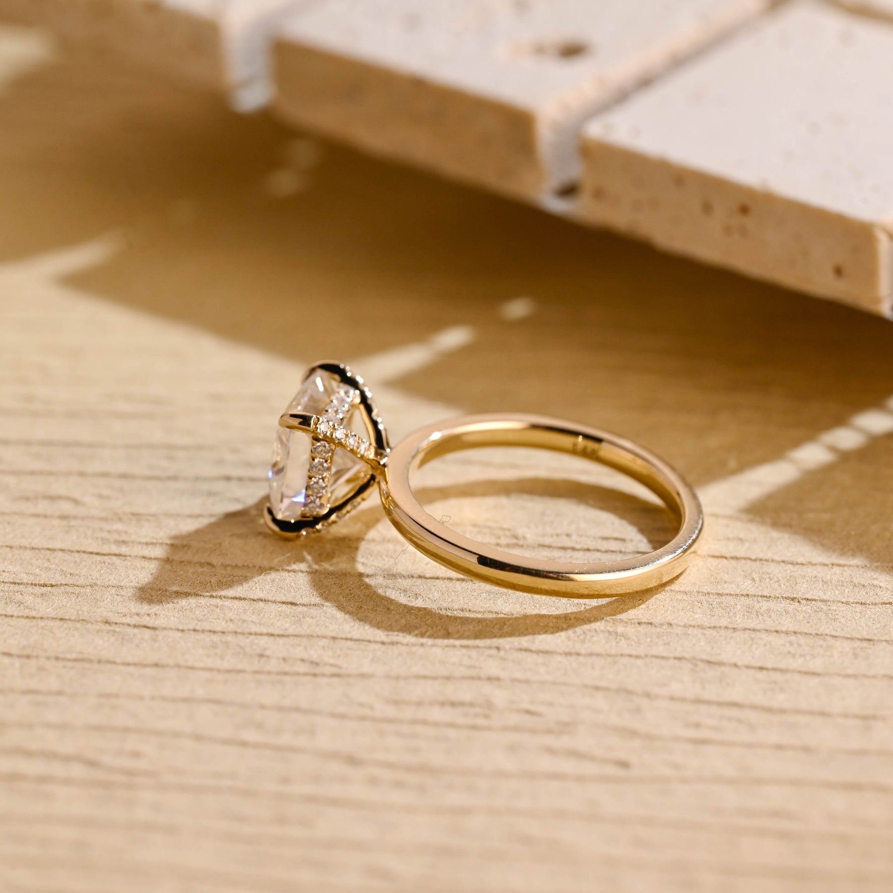 1.0CT Princess Cut Hidden Halo Diamond Moissanite Engagement Ring