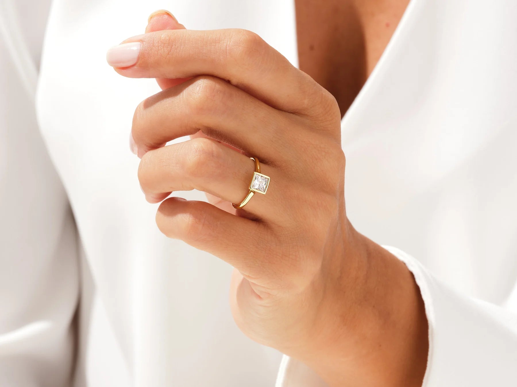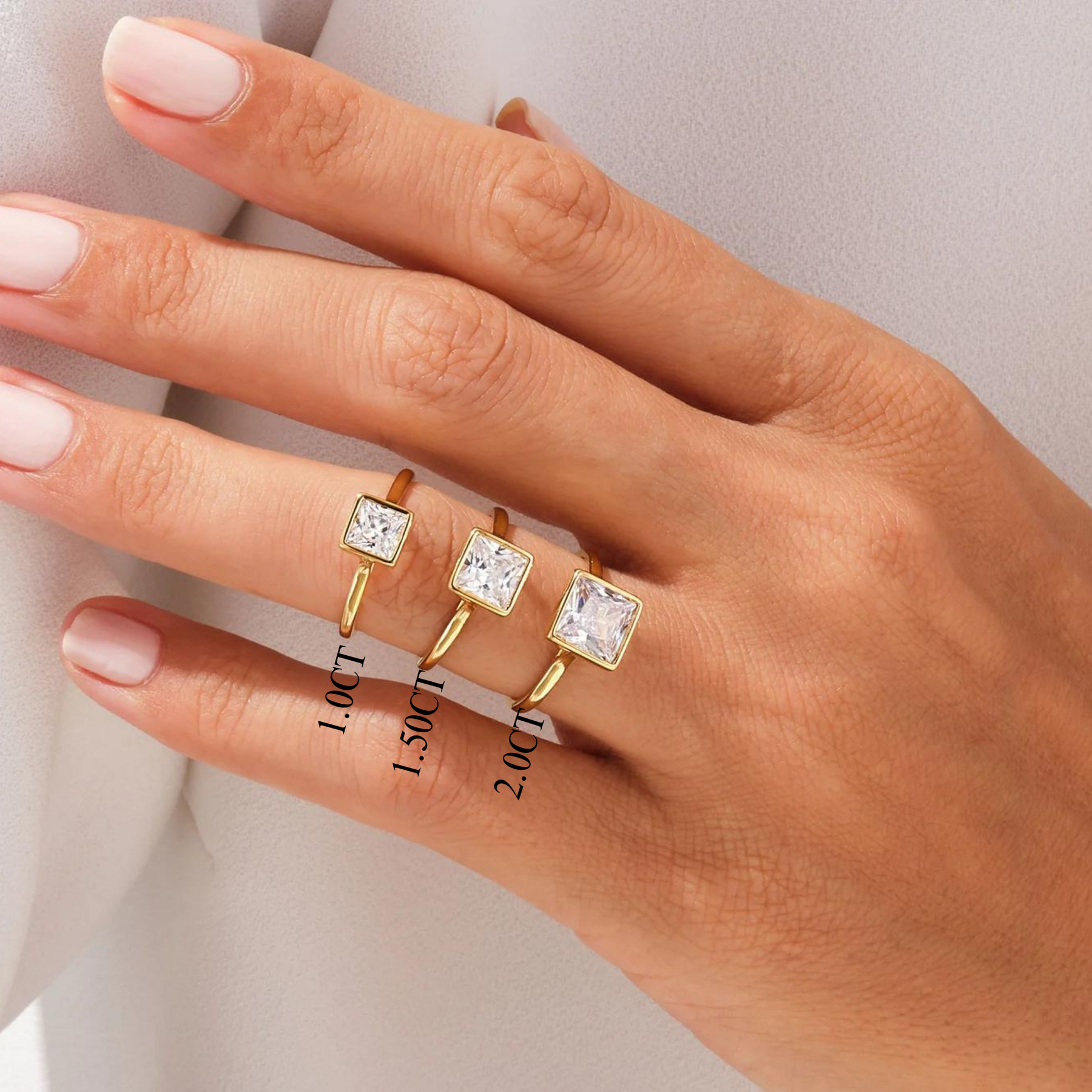 1.0CT Princess Diamond Bezel Setting Solitaire Moissanite Engagement Ring