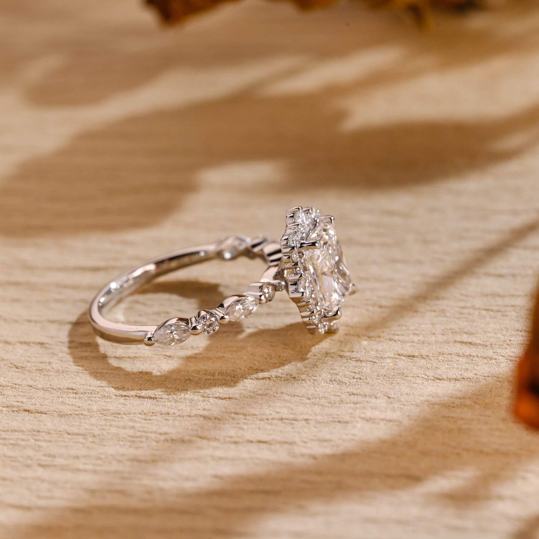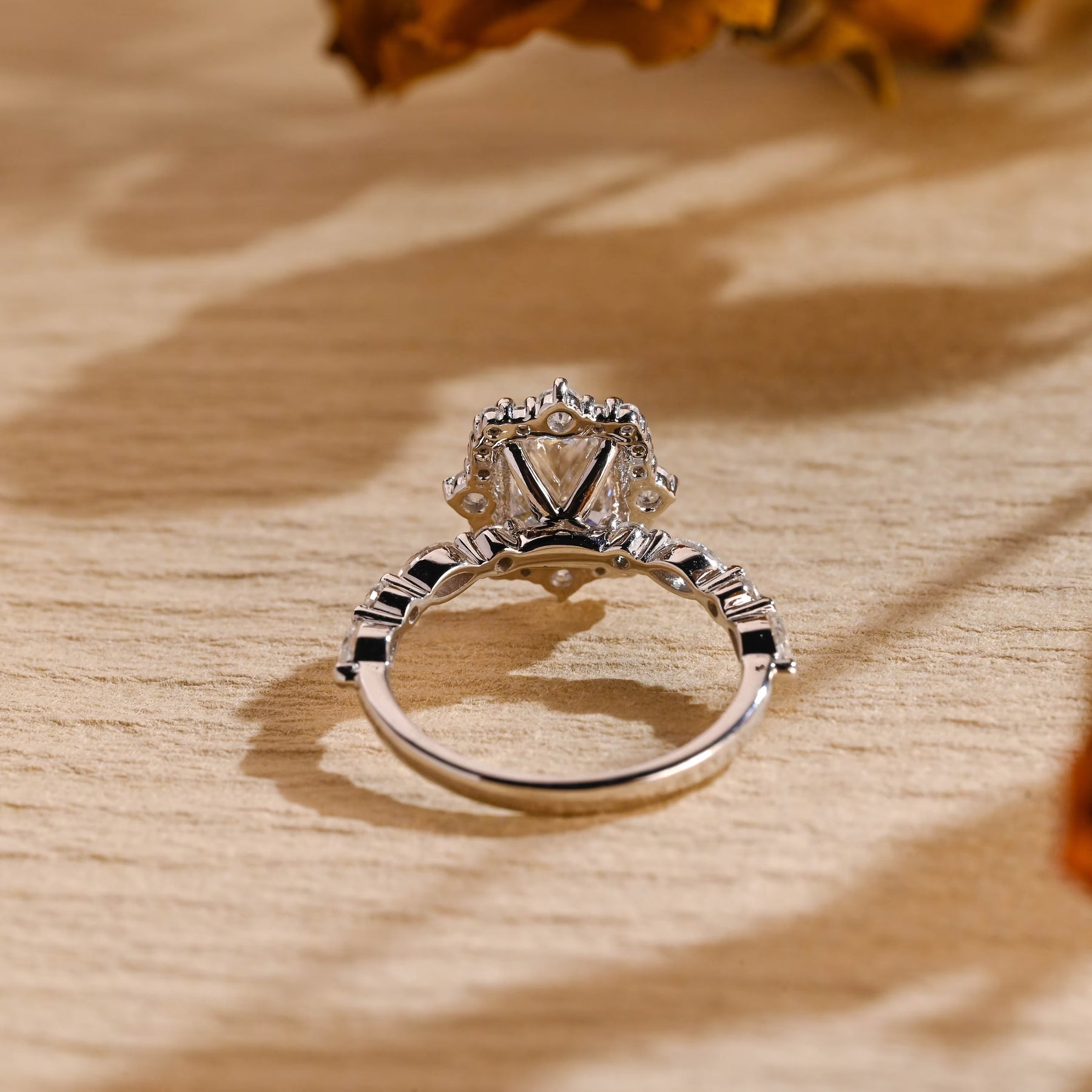 1.0CT Radiant Cut Cluster Diamond Moissanite Engagement Ring