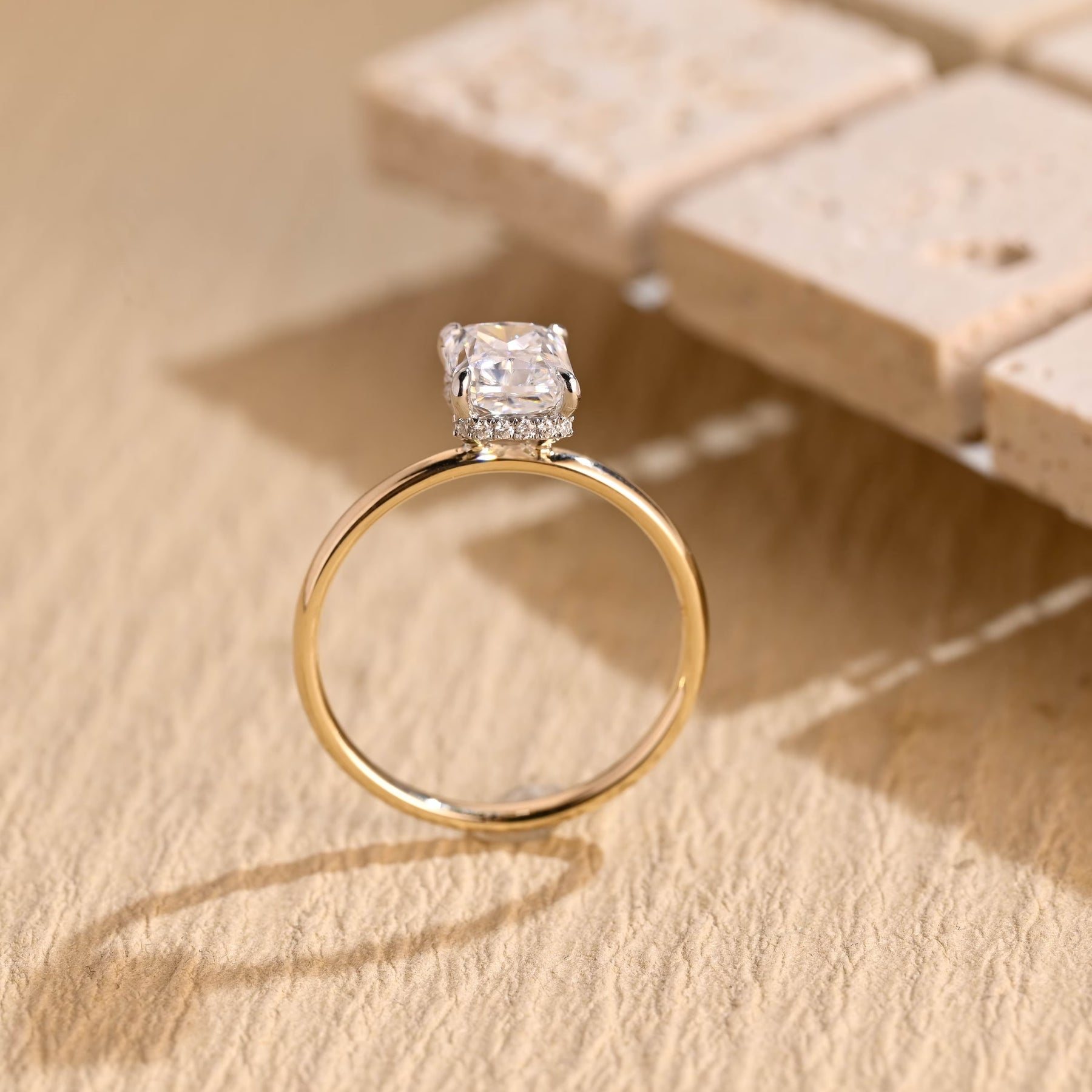 1.0CT Radiant Cut Hidden Halo Diamond Moissanite Engagement Ring