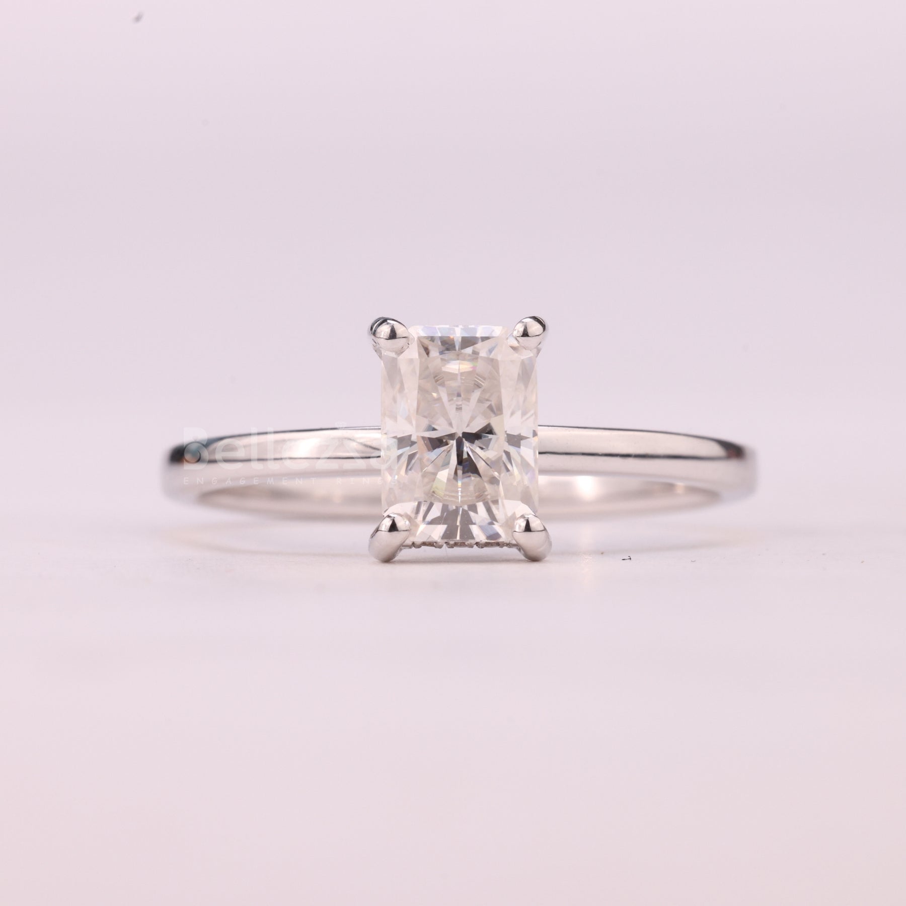 1.0CT Radiant Cut Hidden Halo Moissanite Engagement Ring