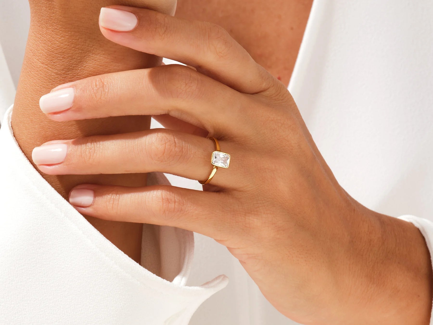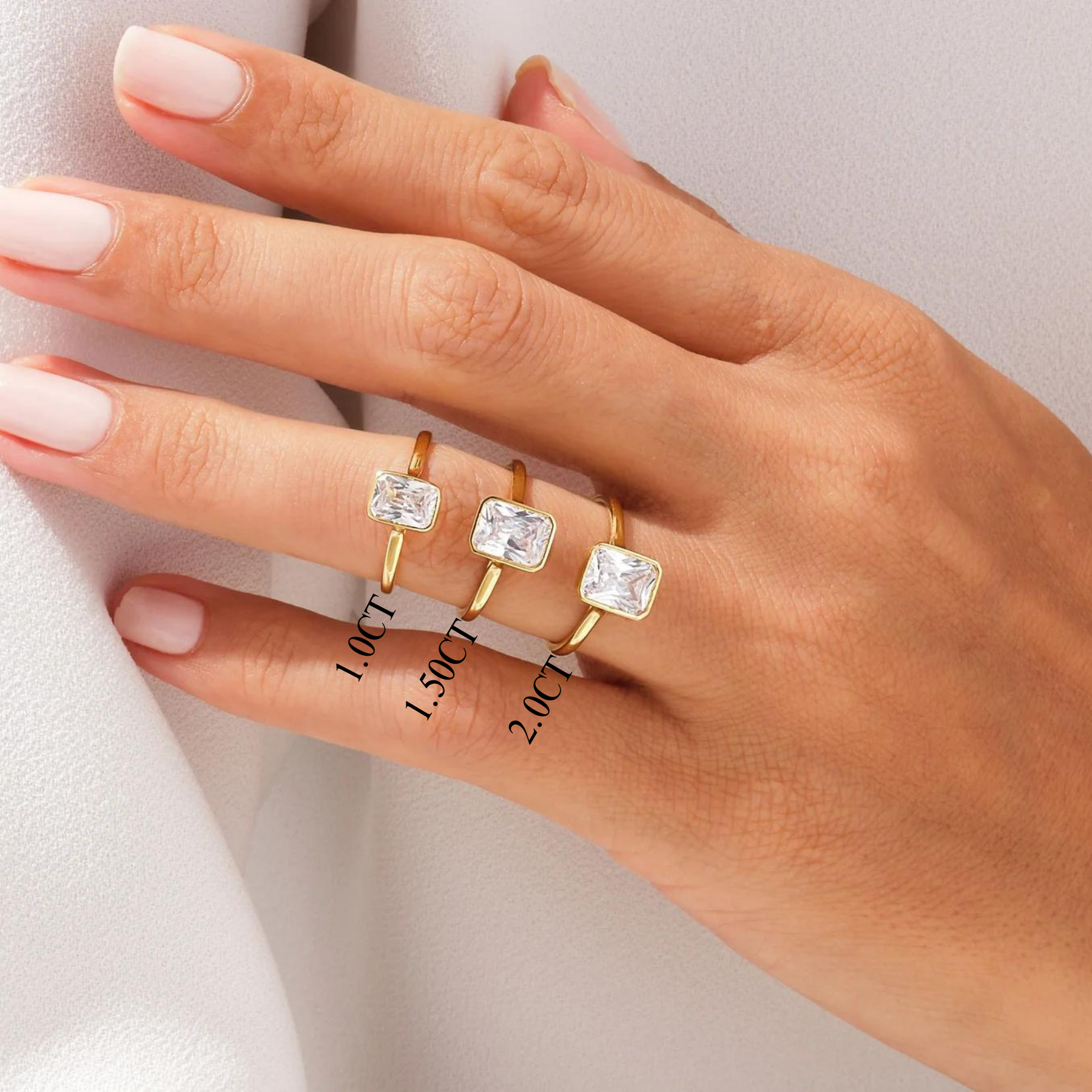1.0CT Radiant Diamond Bezel Setting Solitaire Moissanite Engagement Ring