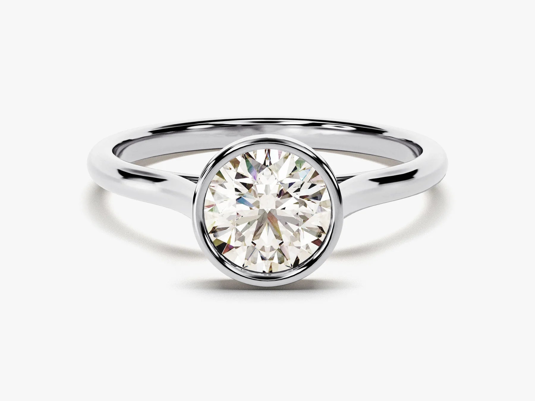 1.0CT Round Brilliant Diamond Bezel Solitaire Moissanite Engagement Ring
