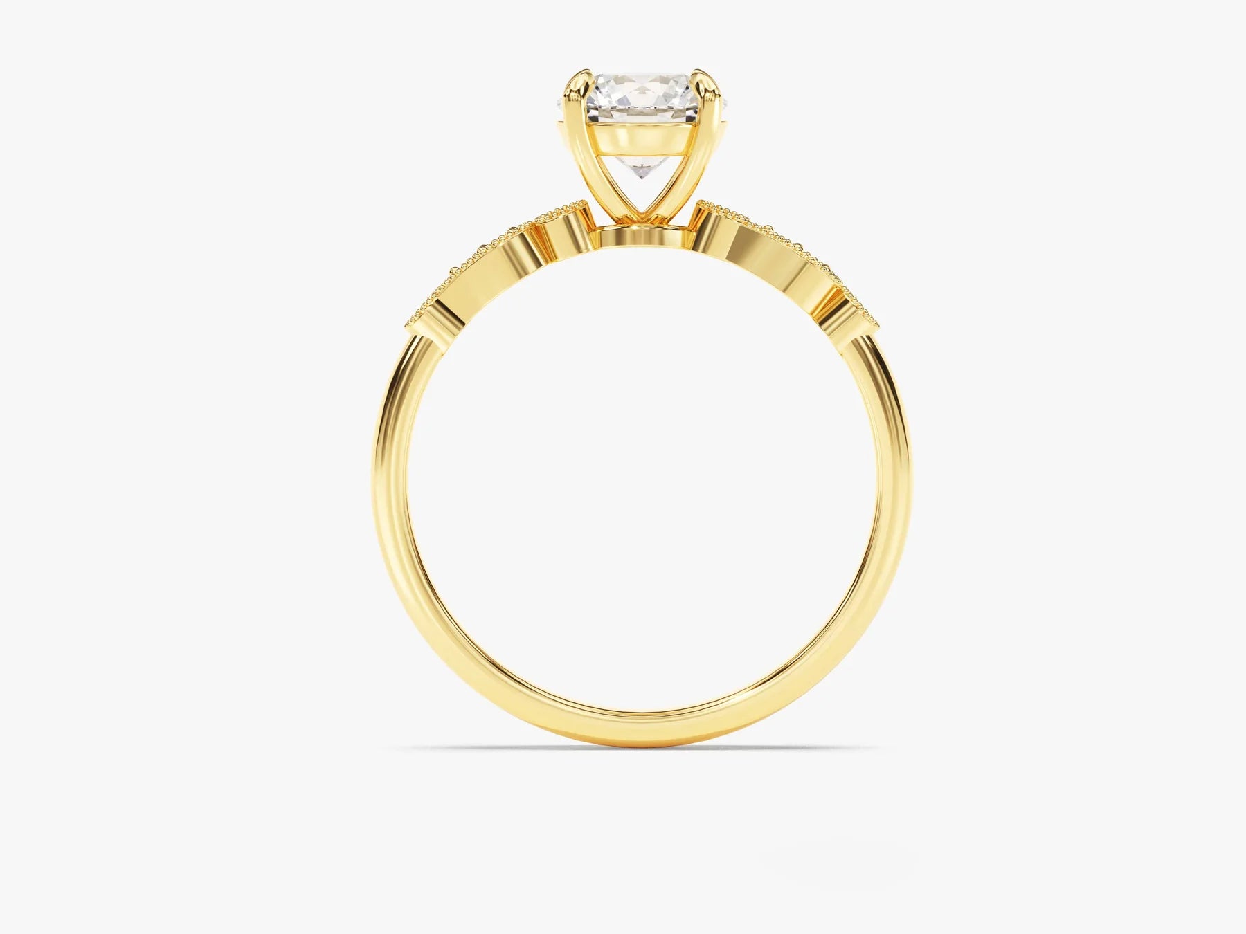 1.0CT Round Brilliant Diamond Milgrain Pave Setting Moissanite Engagement Ring