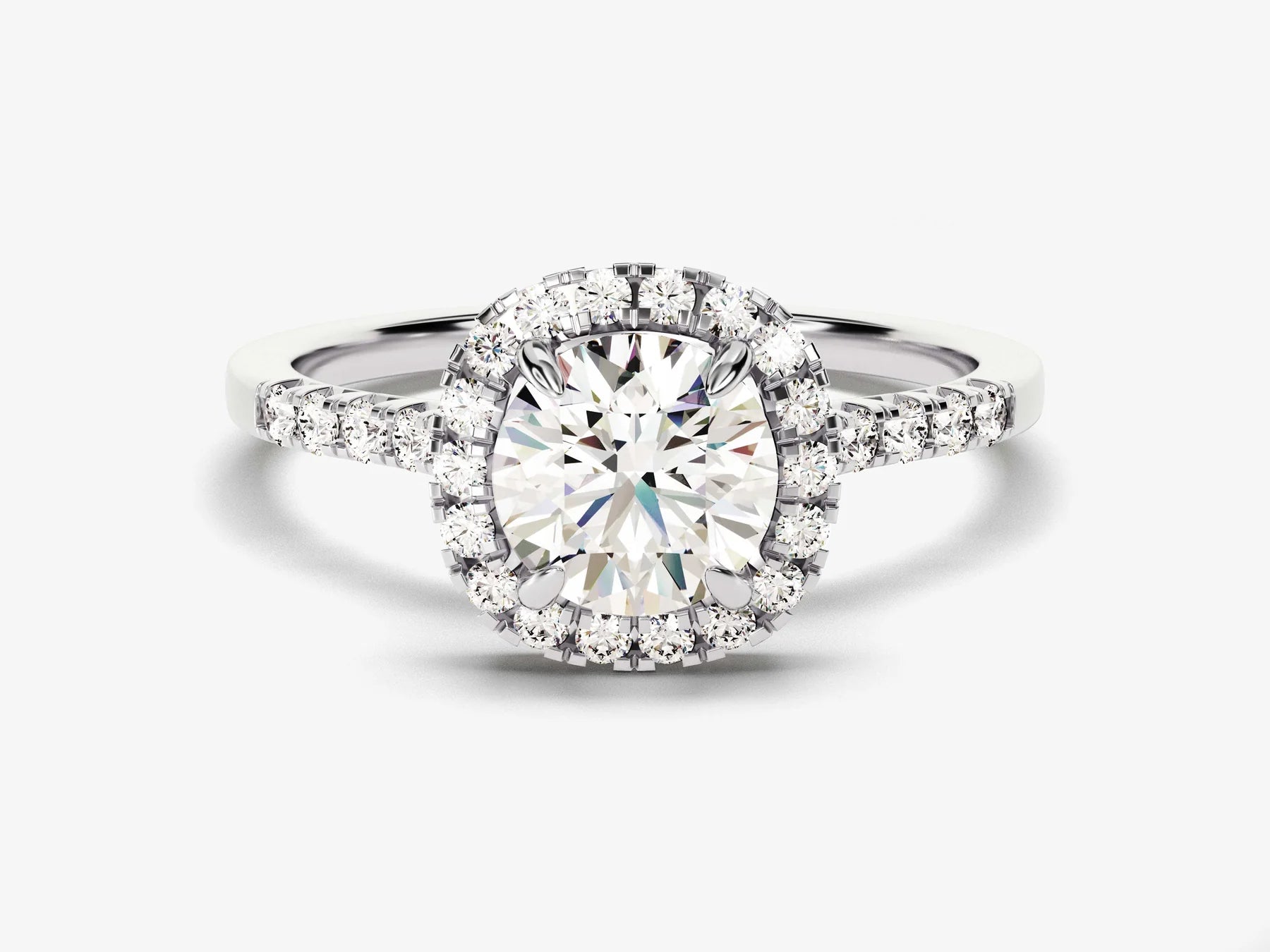 1.0CT Round Brilliant Diamond Halo Pave Setting Moissanite Engagement Ring