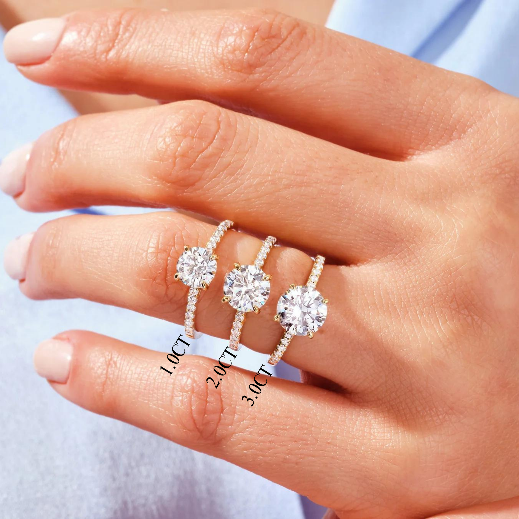 1.0CT Round Brilliant Diamond Pave Setting Moissanite Engagement Ring